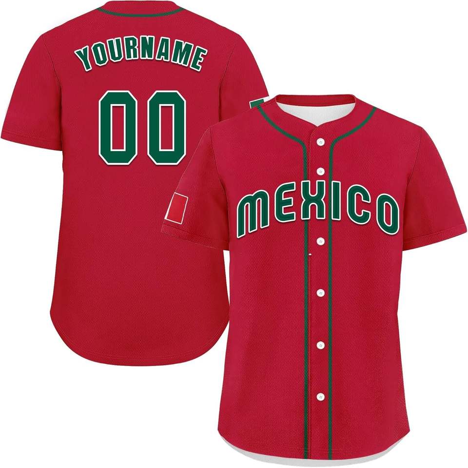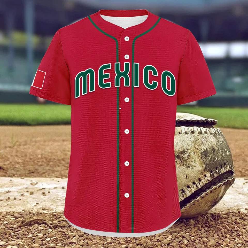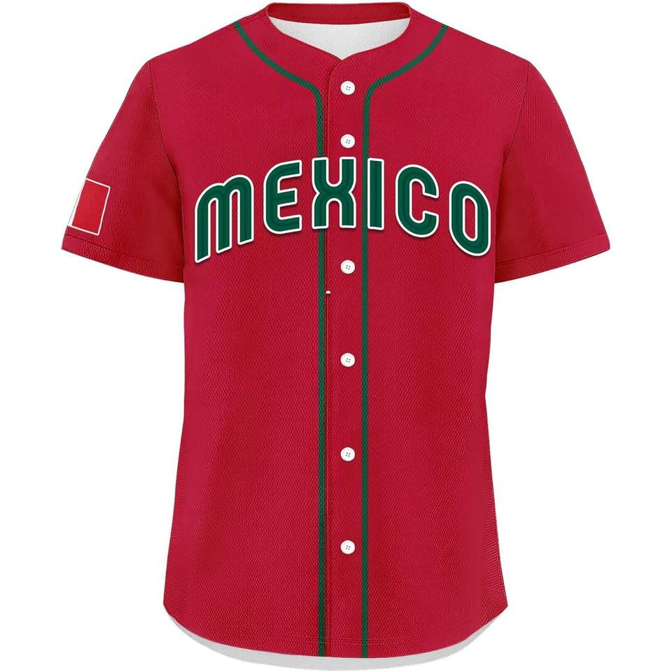 เสื้อเบสบอลเม็กซิโกแบบปรับแต่งได้ ชื่อและหมายเลขส่วนตัว แขนสั้น ชุดแฟนคลับเม็กซิกันสำหรับทีม