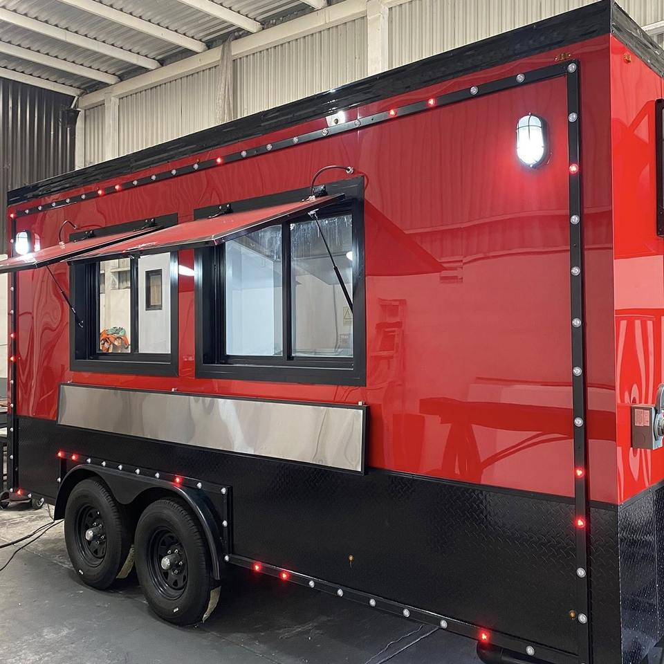เครื่องพ่วงอาหารเคลื่อนที่สำหรับขายปลีกขนมขบเคี้ยวผลิตภัณฑ์นมขนมฮอทด็อกทำจากบาร์บีคิวทำจากข้าวโพด