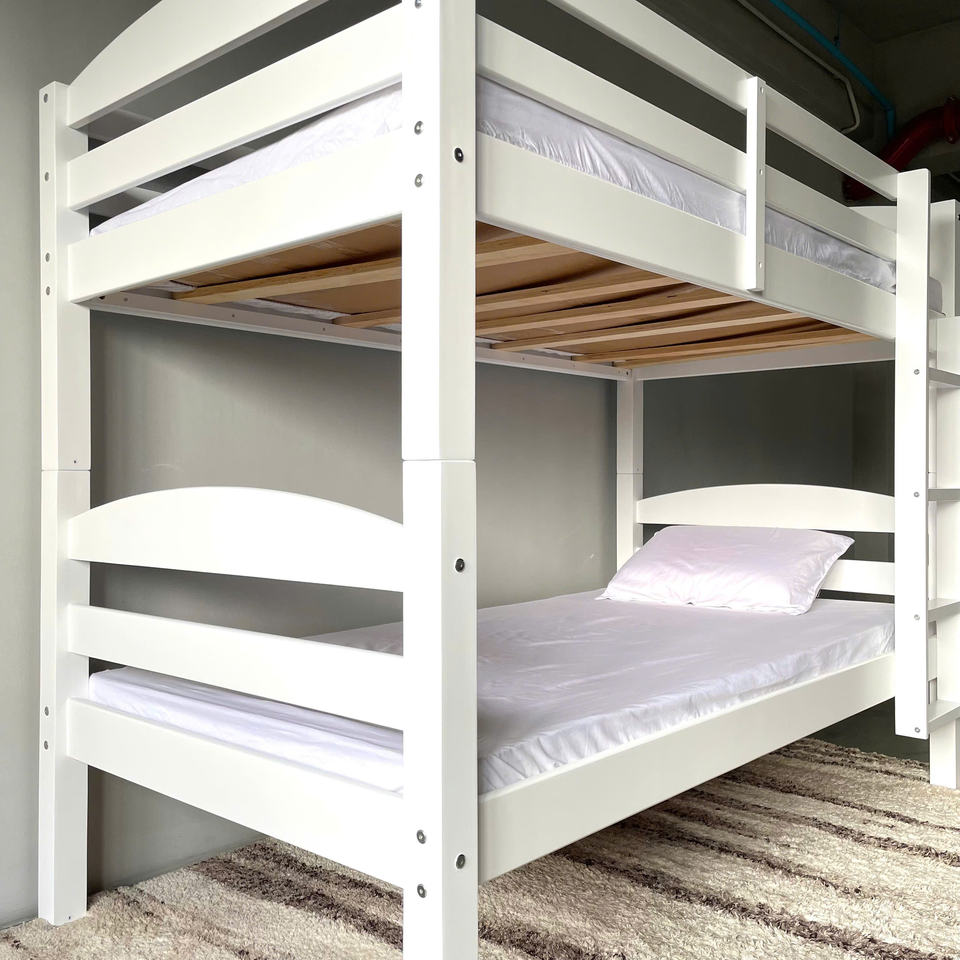 เตียงสองชั้นสีขาวสไตล์มินิมอลปรับแต่งได้ เฟอร์นิเจอร์ห้องนอนไม้สั่งทำสำหรับเด็ก