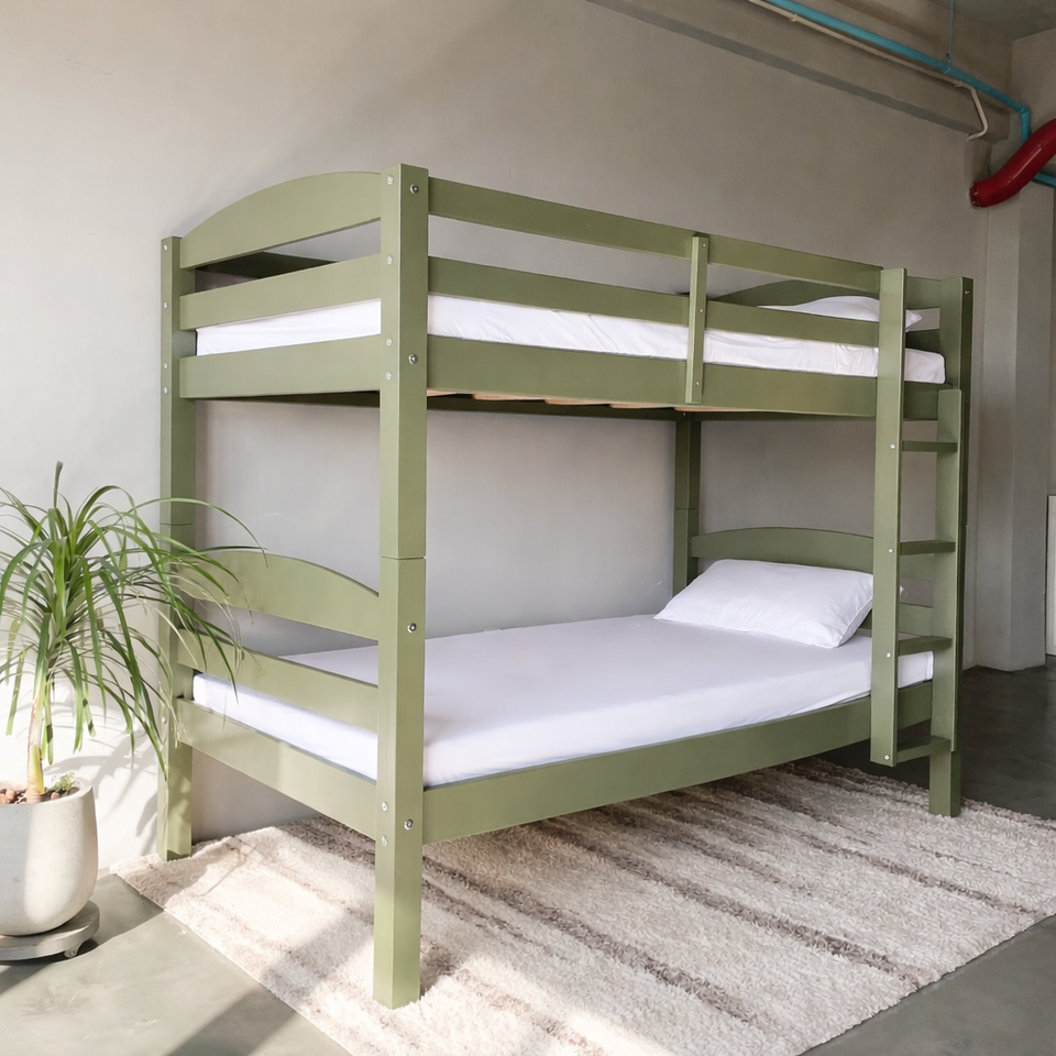 เตียงสองชั้นสีเขียวมะกอกแบบมินิมอลปรับแต่งได้ เฟอร์นิเจอร์ห้องนอนไม้สั่งทำสำหรับเด็ก