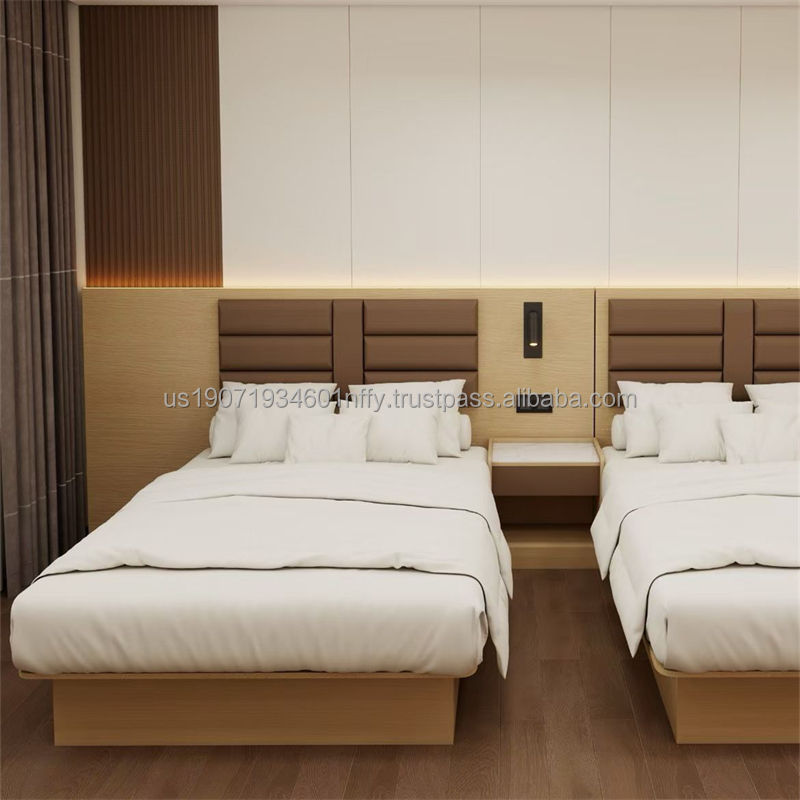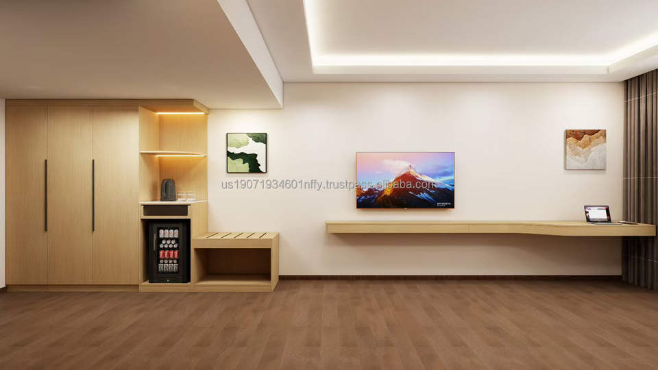 ชุดเฟอร์นิเจอร์ห้องนอนสำหรับโครงการโรงแรม 3 ดาว ที่ปรับแต่งได้ ทันสมัย ทนทาน ราคาประหยัด พร้อมเตียงคิงไซส์ ตู้เสื้อผ้า มินิบาร์ และทีวี
