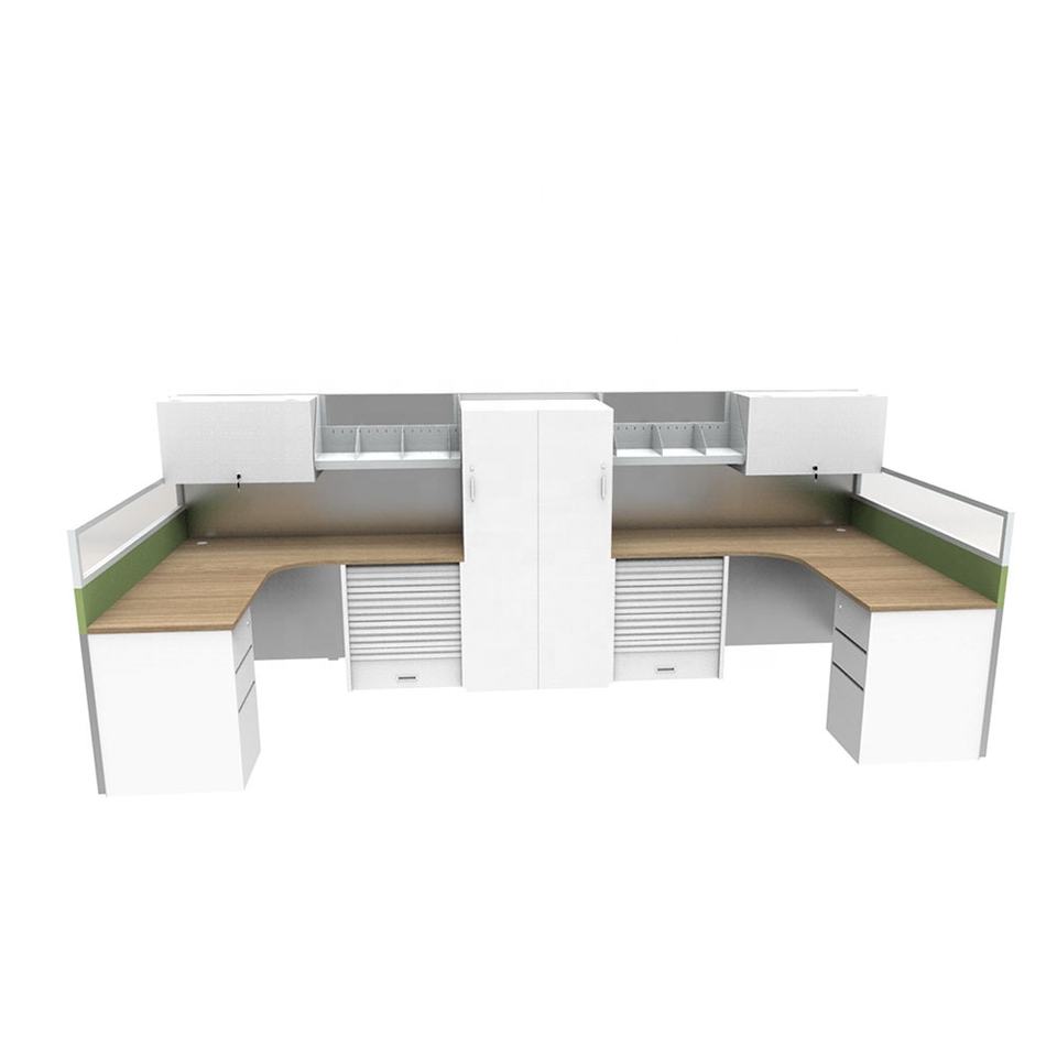 เฟอร์นิเจอร์สำนักงานไม้สีเขียวทันสมัย ทนทาน ปรับแต่งได้ โต๊ะคอมพิวเตอร์เหล็กพร้อมฉากกั้นปรับระดับได้สำหรับใช้ในโรงเรียน