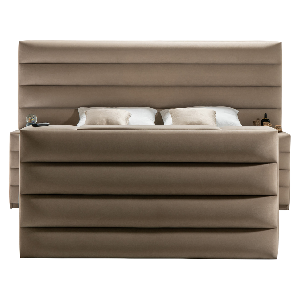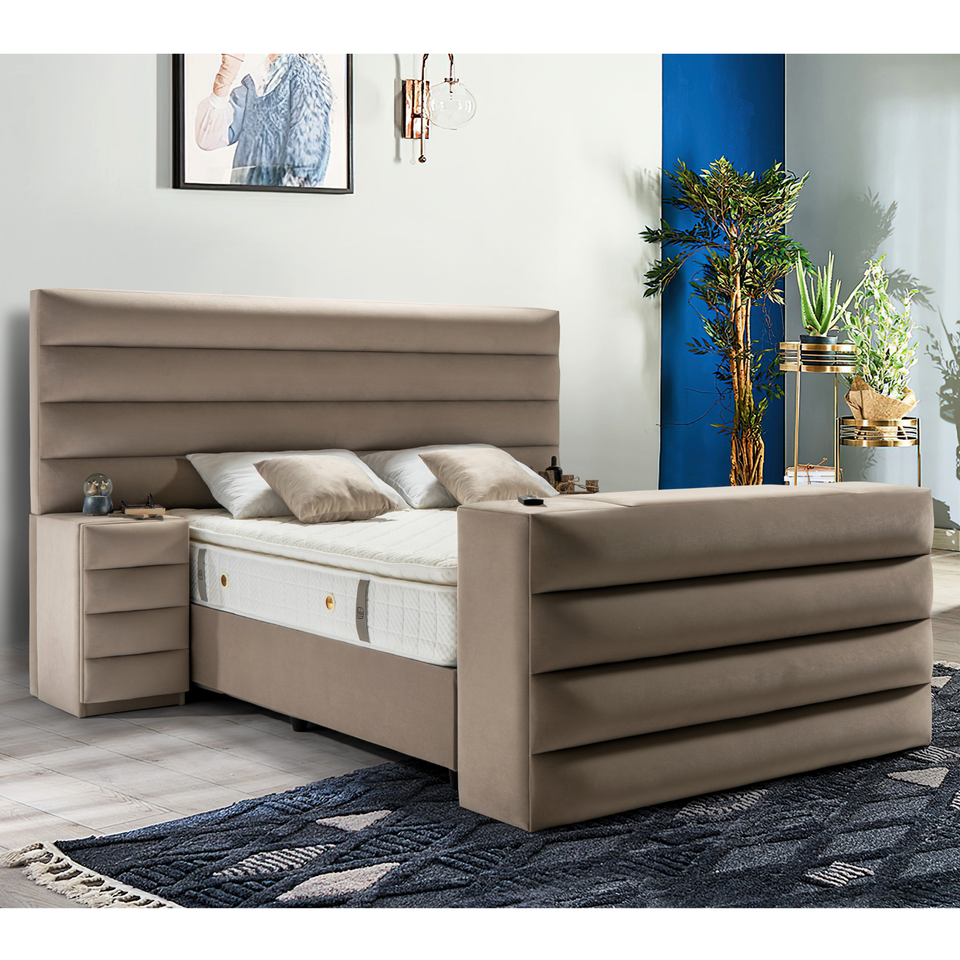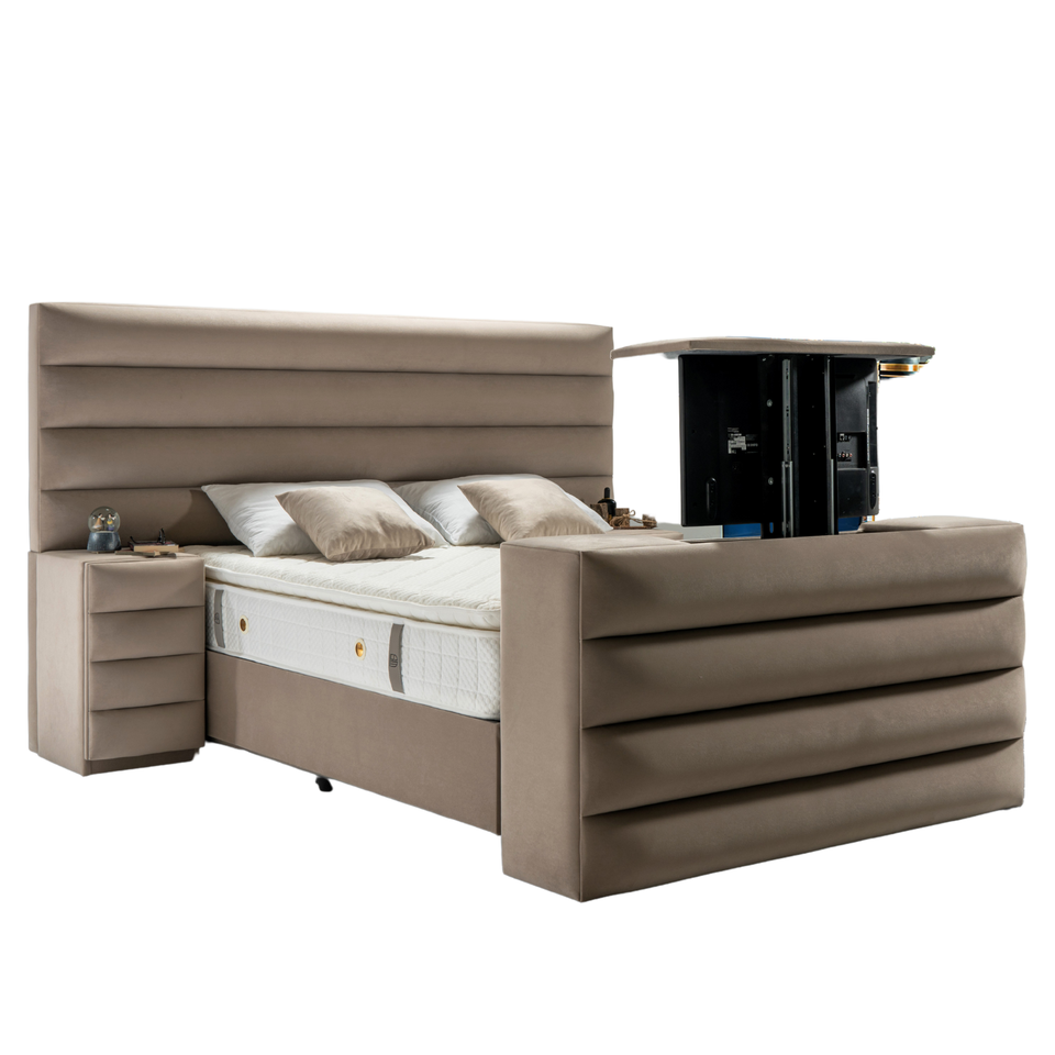 ชุดห้องนอนแบบคลื่นปรับแต่งได้ปรับแต่งได้ทันสมัยฐานเตียงทีวียก2ข้าง-เบาะผ้าลินินกำมะหยี่มีหลายขนาดให้เลือก