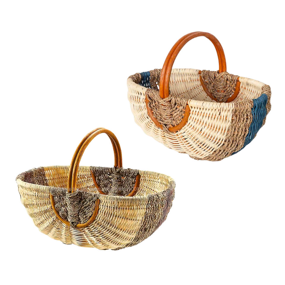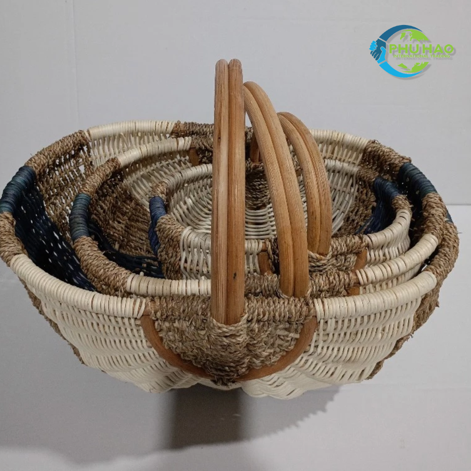 ตะกร้าหวายธรรมชาติปรับแต่งได้ ตะกร้าปิกนิก ตะกร้าเก็บผลไม้ ใช้สำหรับปิกนิกและใช้ในบ้าน งานฝีมือเวียดนาม