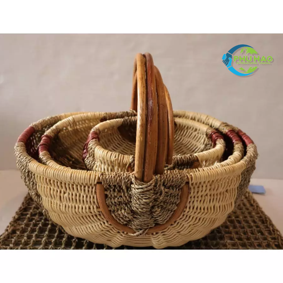 ตะกร้าหวายธรรมชาติปรับแต่งได้ ตะกร้าปิกนิก สำหรับตลาด ปิกนิก ห้องครัว และเก็บผลไม้