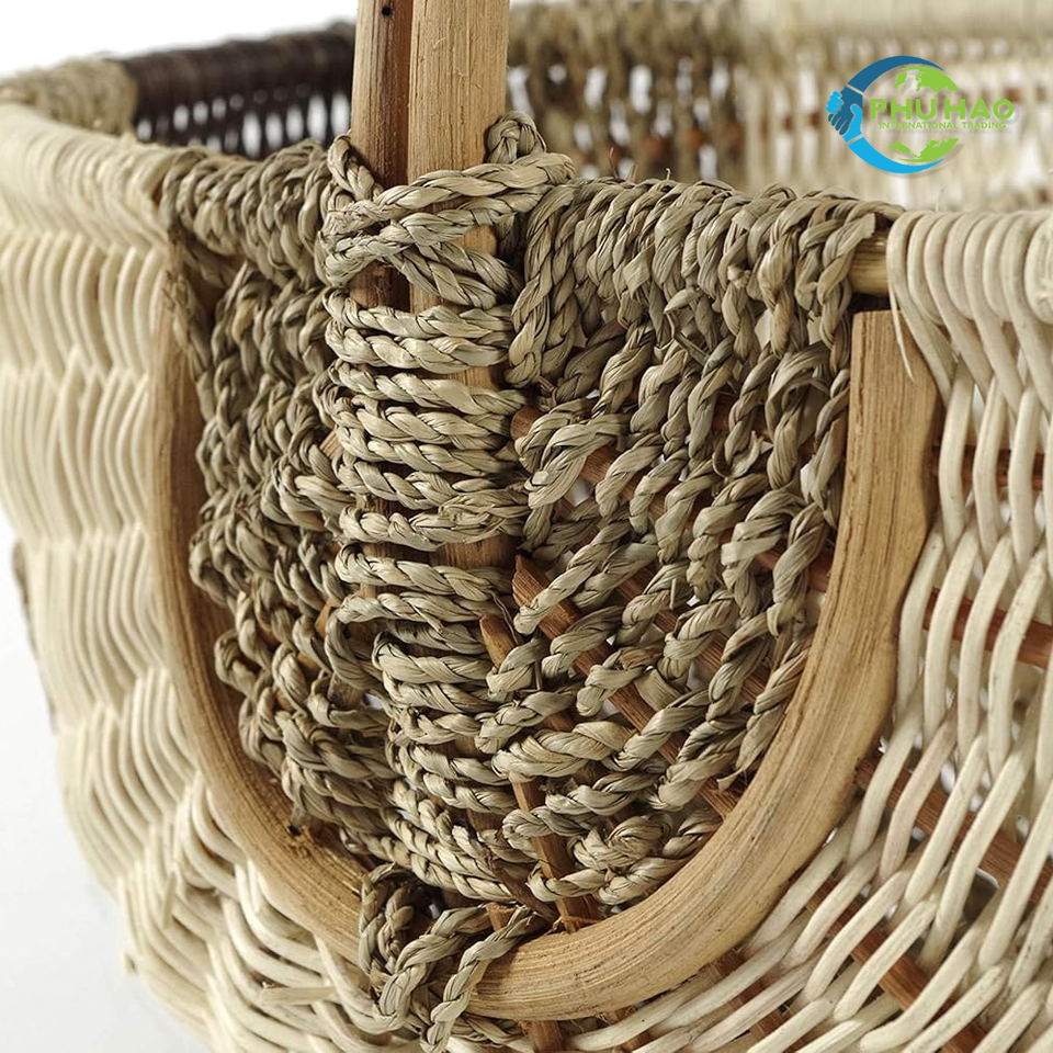 ตะกร้าหวายธรรมชาติปรับแต่งได้ ตะกร้าปิกนิก ตะกร้าเก็บอาหารและจัดระเบียบ