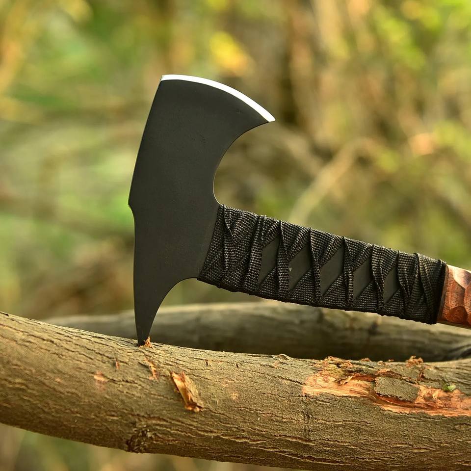 ขวานตีลวดลายแบบนอร์ดิก ฟอร์จ บีอาร์เดด 1095 สตีล สำหรับกิจกรรมกลางแจ้ง ด้ามจับไม้พะยูง แบบฟูลแทงค์ สามารถปรับแต่งได้ตามความต้องการ (ODM)