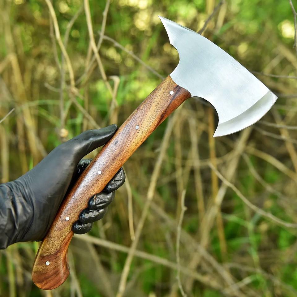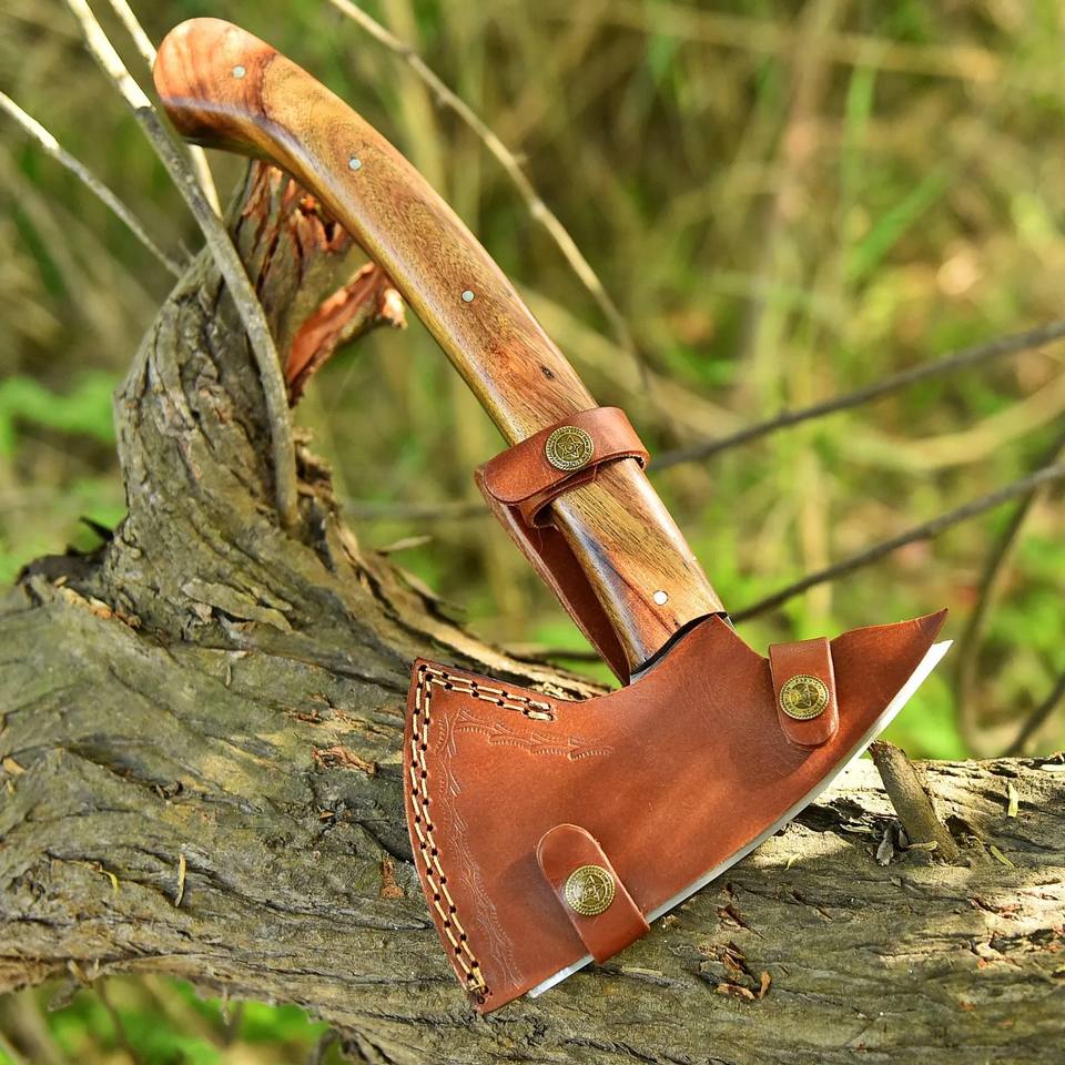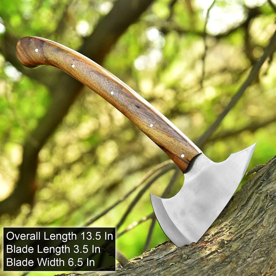 ขวานเหล็ก 1095 สำหรับกิจกรรมกลางแจ้ง แบบ ODM/OEM ที่ปรับแต่งได้ ผลิตด้วยมือ ด้ามจับไม้พะยูง สำหรับตั้งแคมป์และกิจกรรมเอาตัวรอดในป่า
