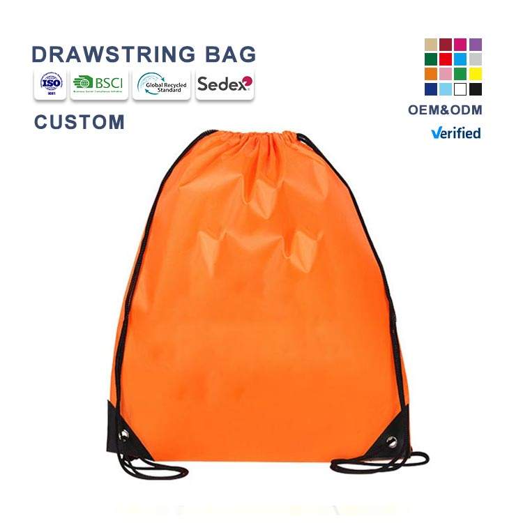 กระเป๋าเป้สะพายหลังแบบมีเชือกผูก โพลีเอสเตอร์ ปรับแต่งได้ตามต้องการ รองรับ OEM พับเก็บได้ พร้อมพิมพ์โลโก้ สำหรับงานโฆษณาส่งเสริมการขาย