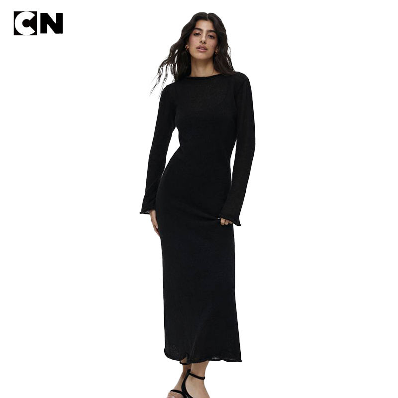 เดรสสเวตเตอร์แบบถักของผู้หญิงเดรสยาวเข้ารูปแขนยาวผลิตตามสั่ง