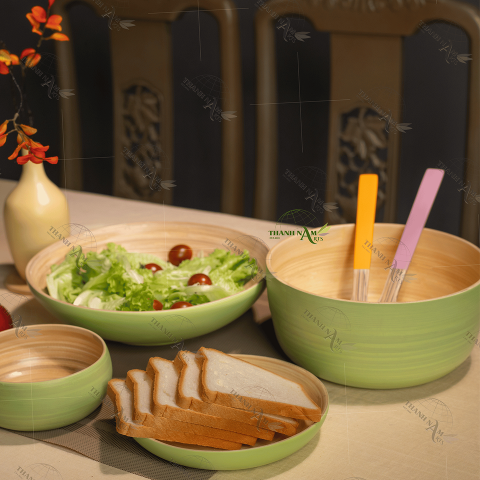 ชามไม้ไผ่ออร์แกนิคแบบปรับแต่งได้เครื่องใช้บนโต๊ะอาหารเป็นมิตรต่อสิ่งแวดล้อมสำหรับซุปสลัดและบะหมี่