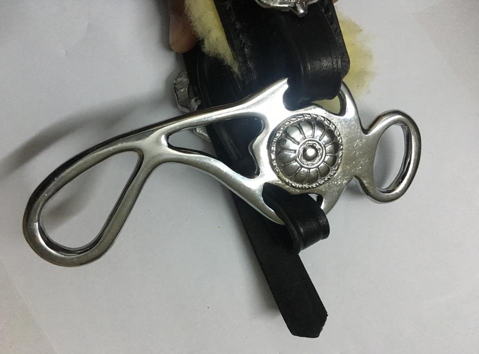 Hackamore หนังแท้สำหรับขี่ม้าบิตไร้ที่กำหนดเองพร้อมก้านสแตนเลสสีน้ำตาลดำสำหรับผลิตภัณฑ์ขี่ม้า
