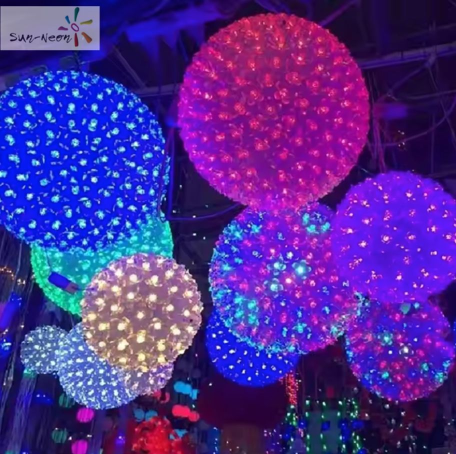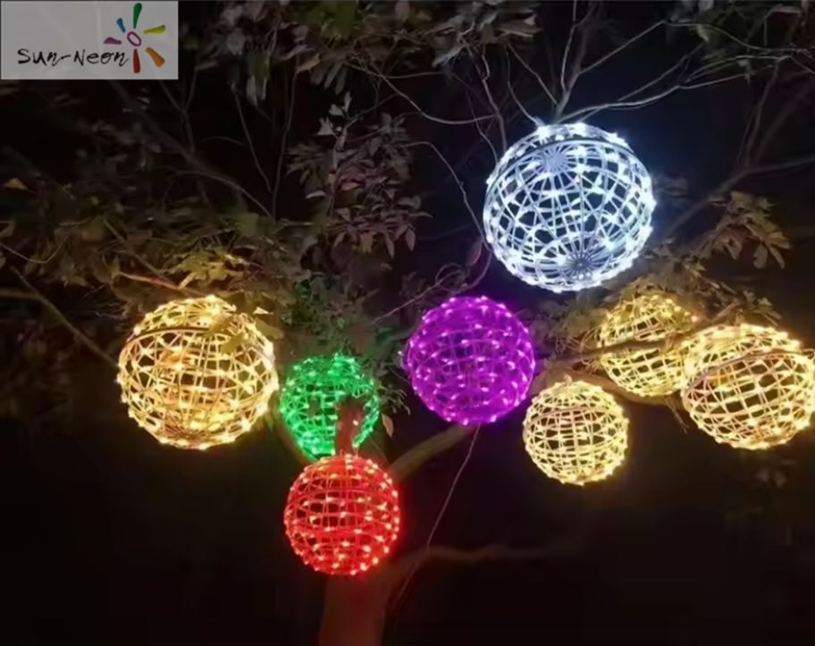 ไฟ LED ทรงกลมติดต้นไม้บนถนนกลางแจ้งปรับแต่งได้สีสันสวยงามใช้แขวนตกแต่ง3D สำหรับวันหยุด