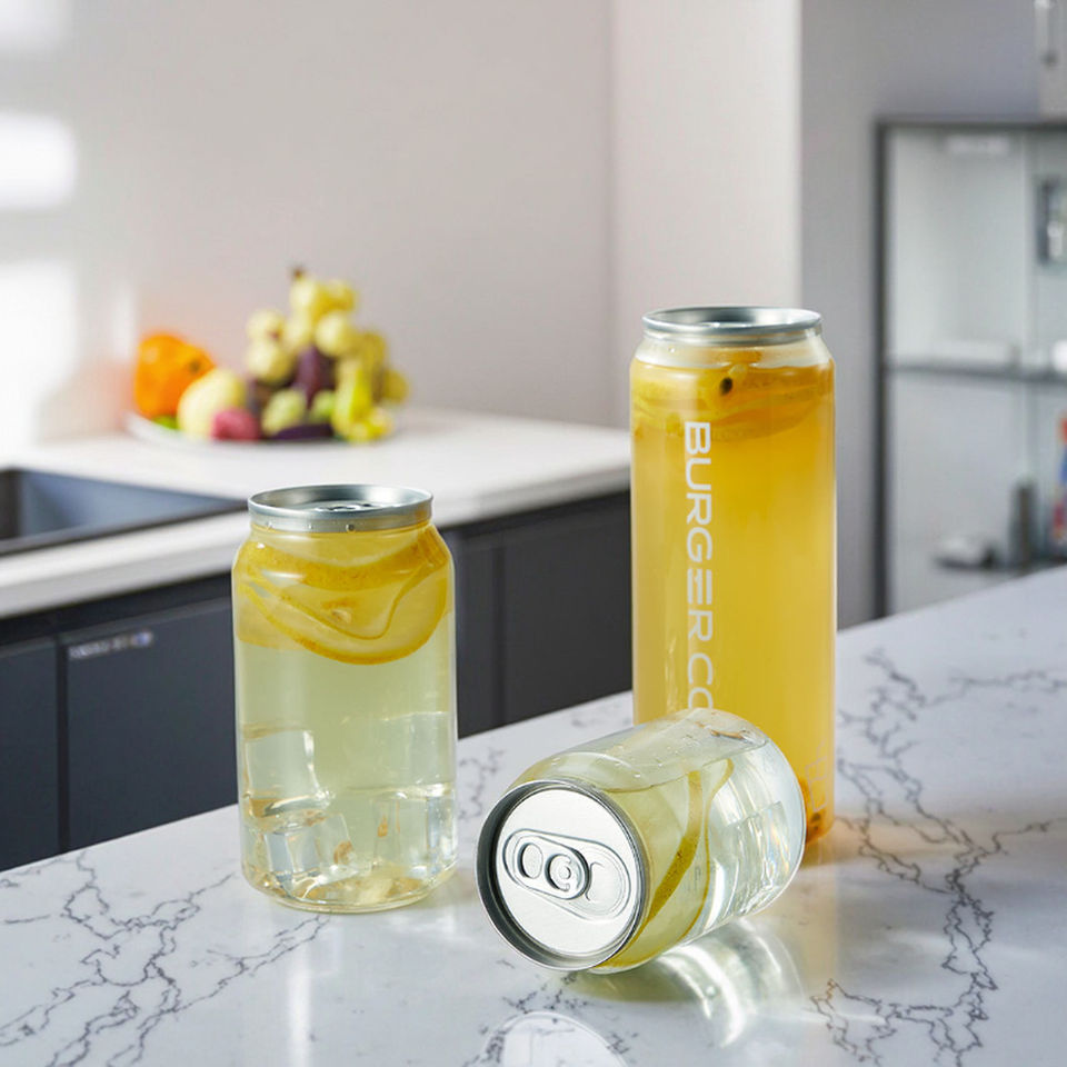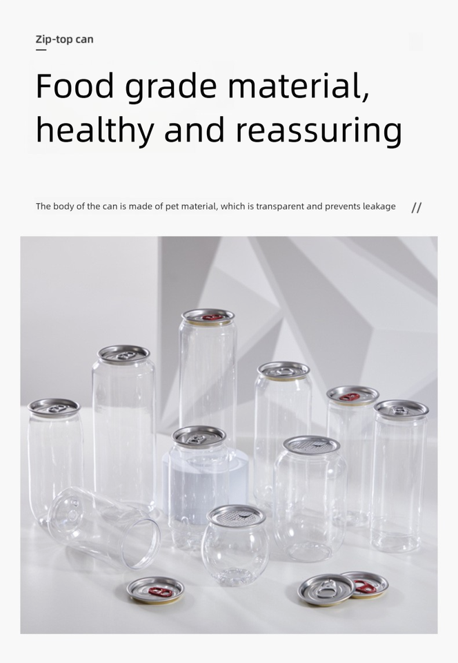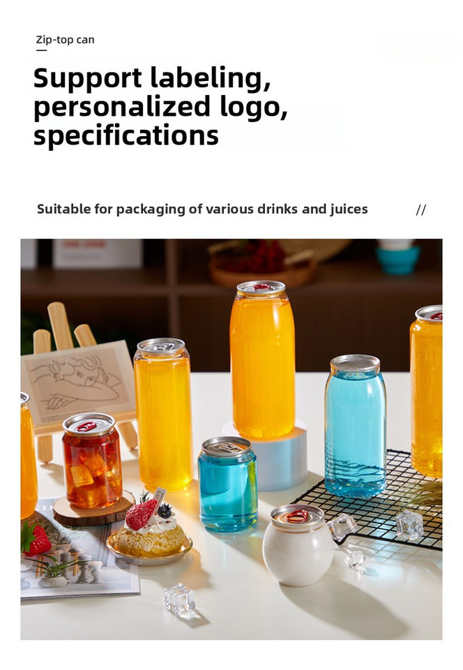 กระป๋องเครื่องดื่ม PET แบบกำหนดเองได้ พิมพ์ลายเนียน ขวดน้ำผลไม้พลาสติก ฝาอลูมิเนียม สำหรับเครื่องดื่มชูกำลัง โซดา เบียร์ เครื่องดื่มอัดลม