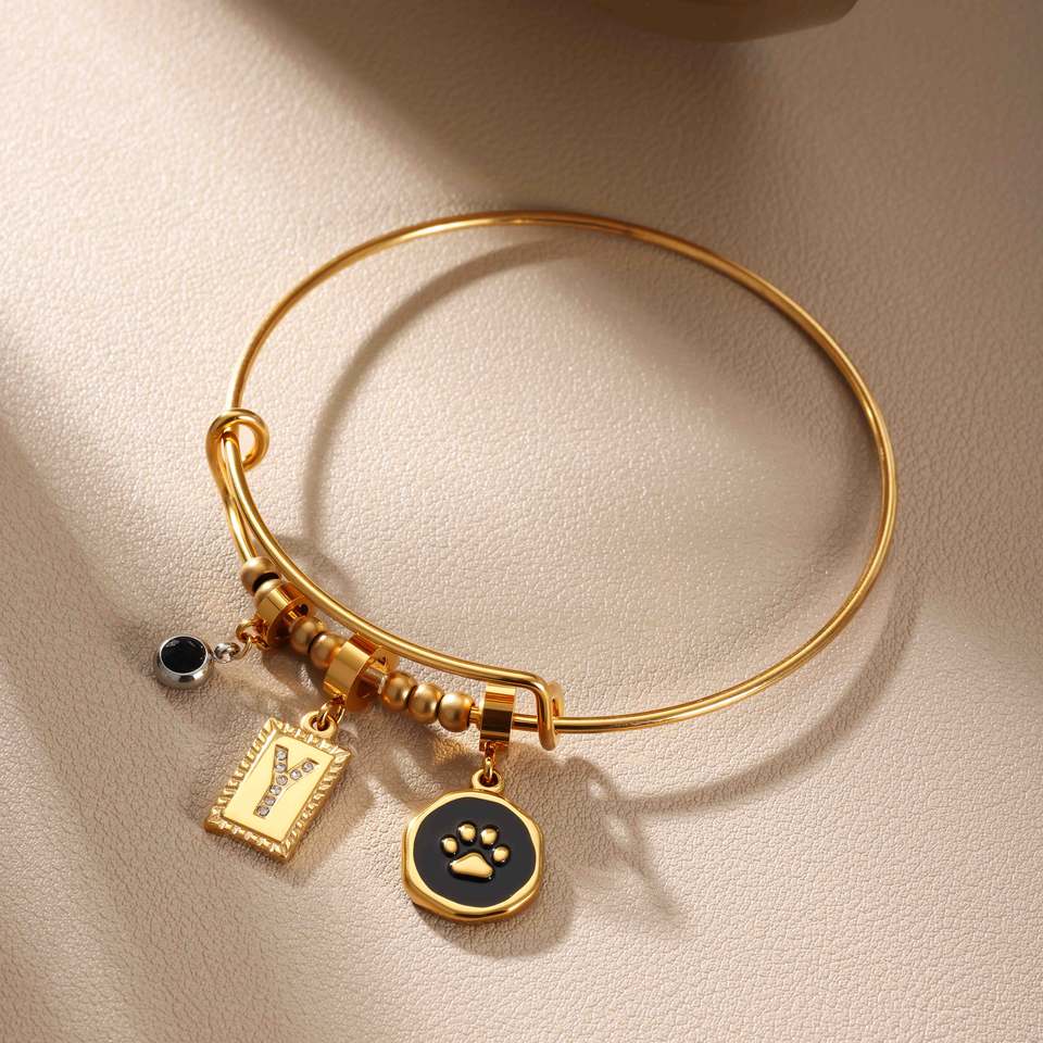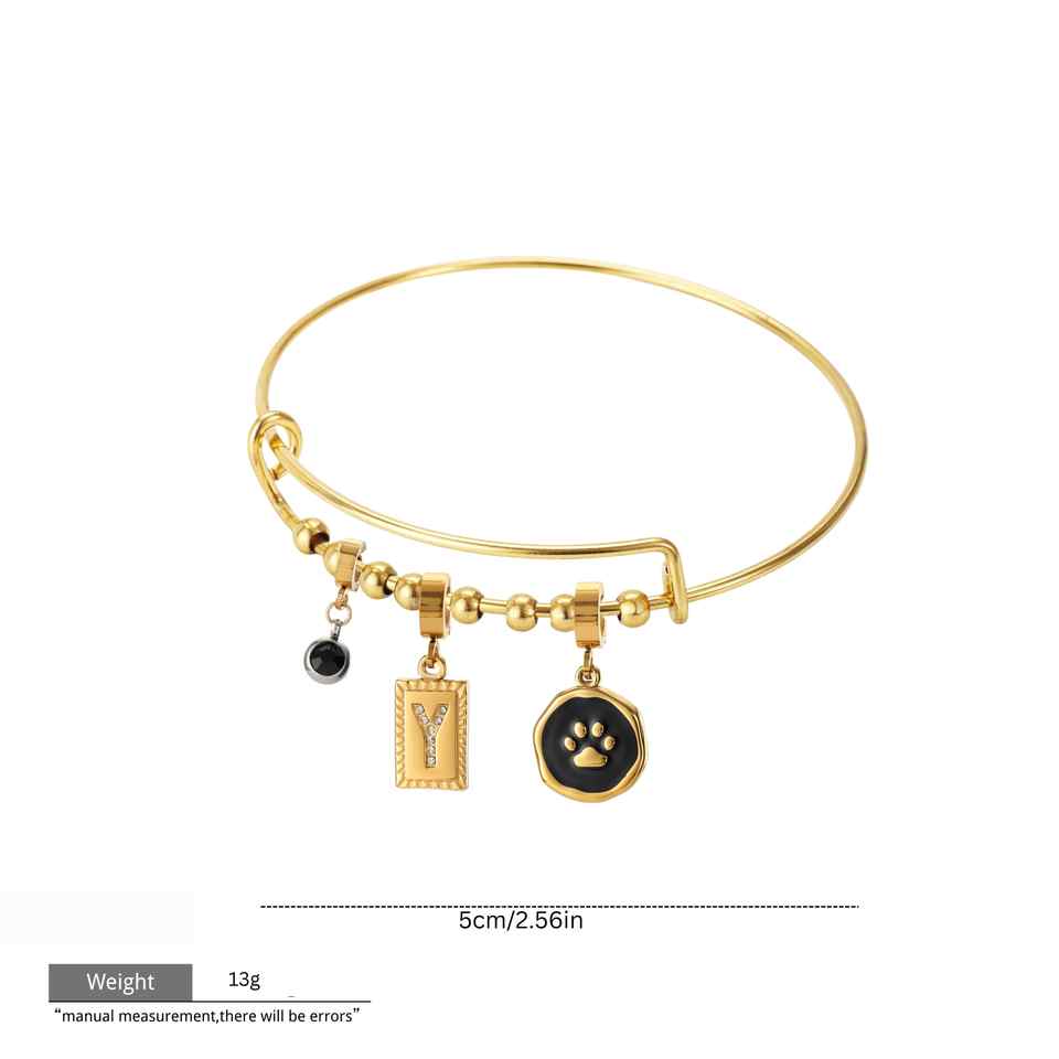 กำไลข้อมือสแตนเลสสตีลปรับขนาดได้ ปรับแต่งได้ตามต้องการ พร้อมจี้โลหะประดับเพชรและเคลือบสีแบบ DIY ที่เปลี่ยนได้