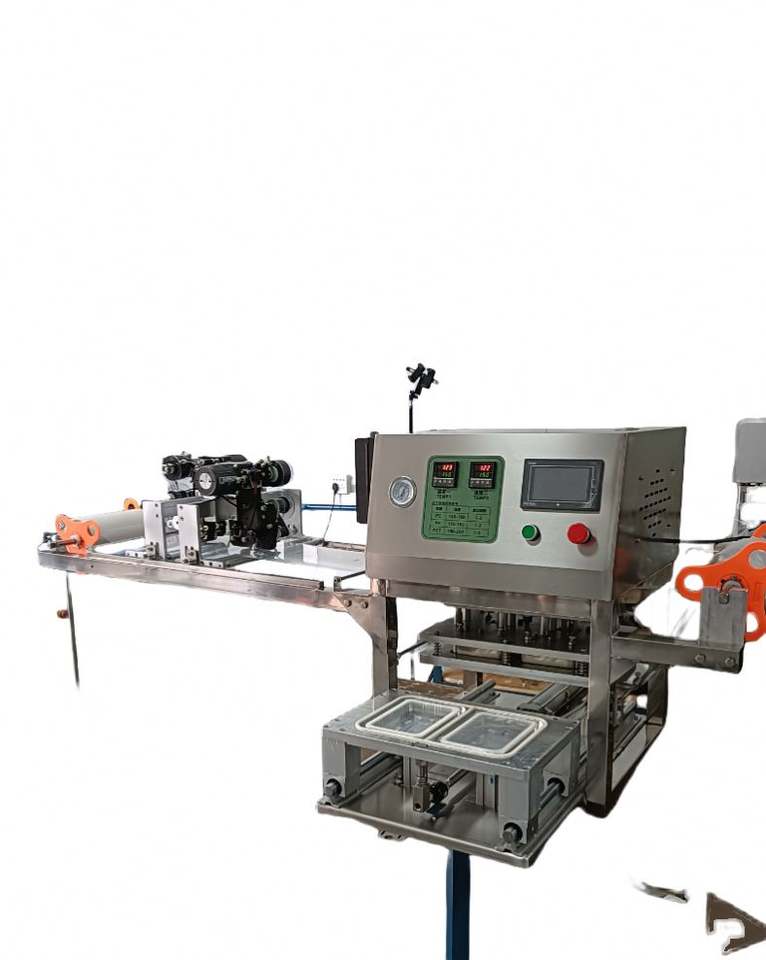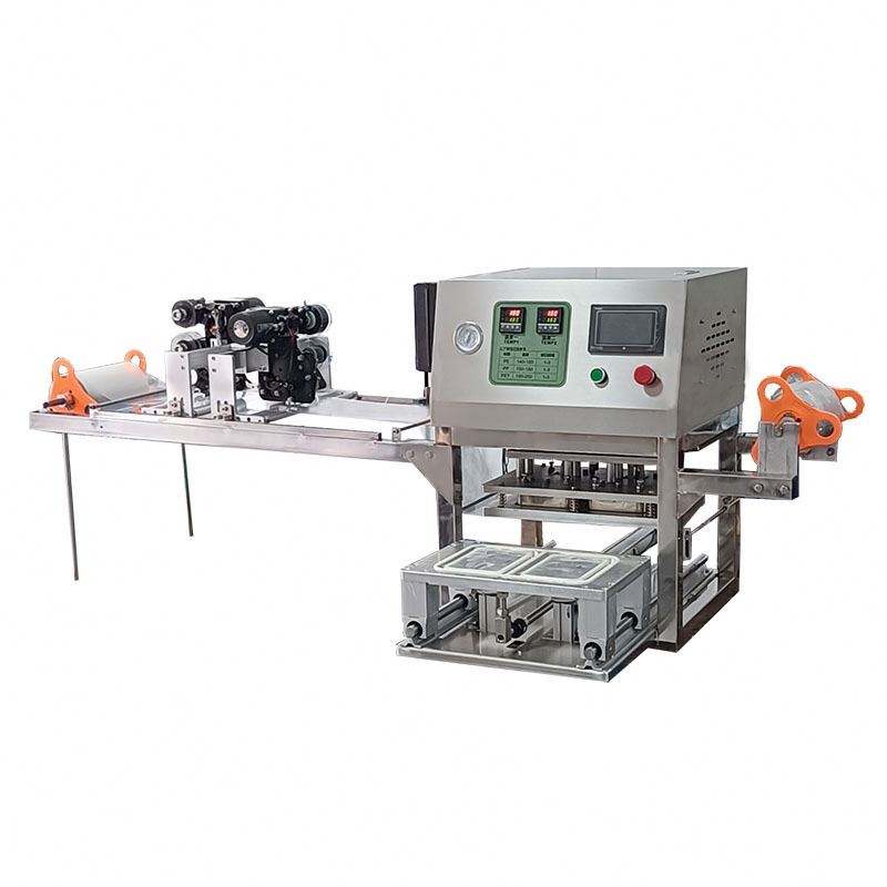 เครื่องซีลกล่องพลาสติกแบบกำหนดเองได้สำหรับอาหารปรุงสุก เช่น คอเป็ด พร้อมเครื่องพิมพ์วันที่แบบอิงค์เจ็ท