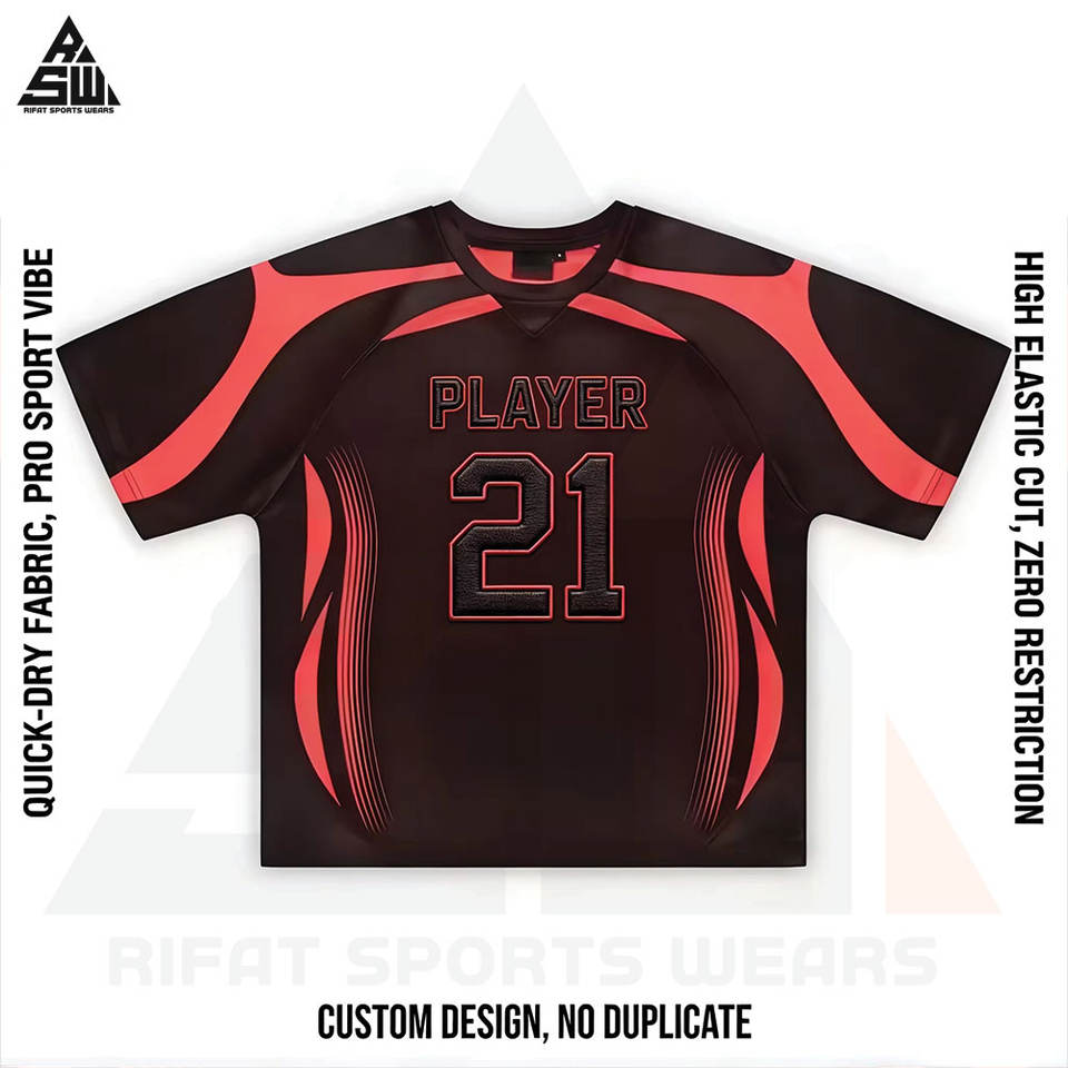 เสื้อฟุตบอลแบบปรับแต่งได้สำหรับผู้เล่นทุกเพศ เสื้อกีฬาฤดูร้อนแบบสั้นพิมพ์ลาย แห้งเร็ว ระบายเหงื่อได้ดี ยืดหยุ่นสูง