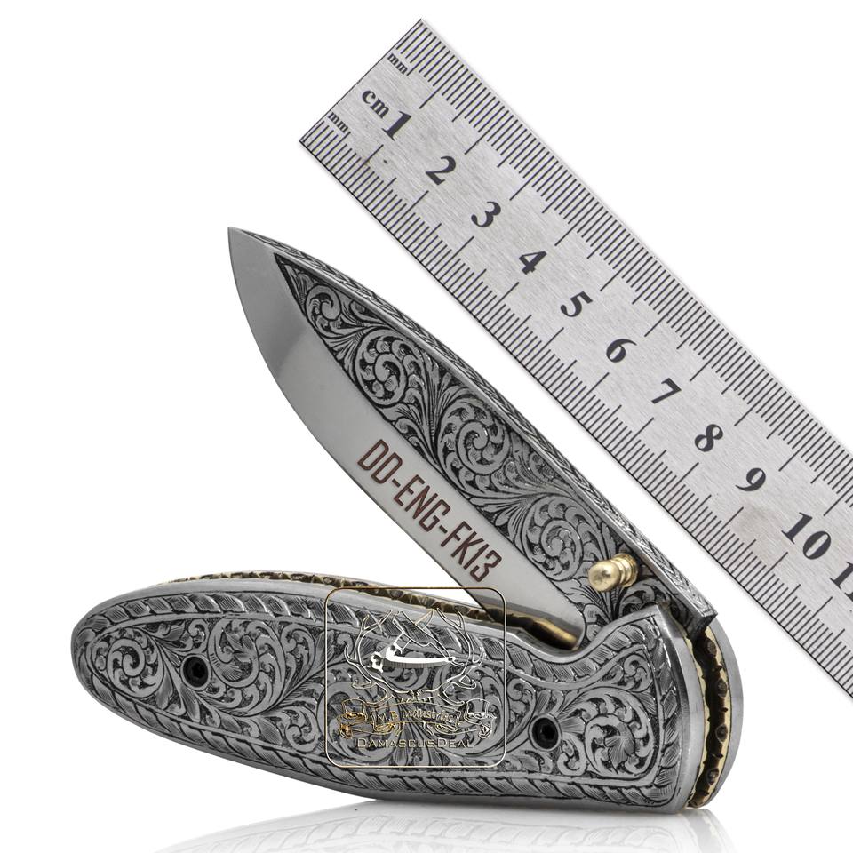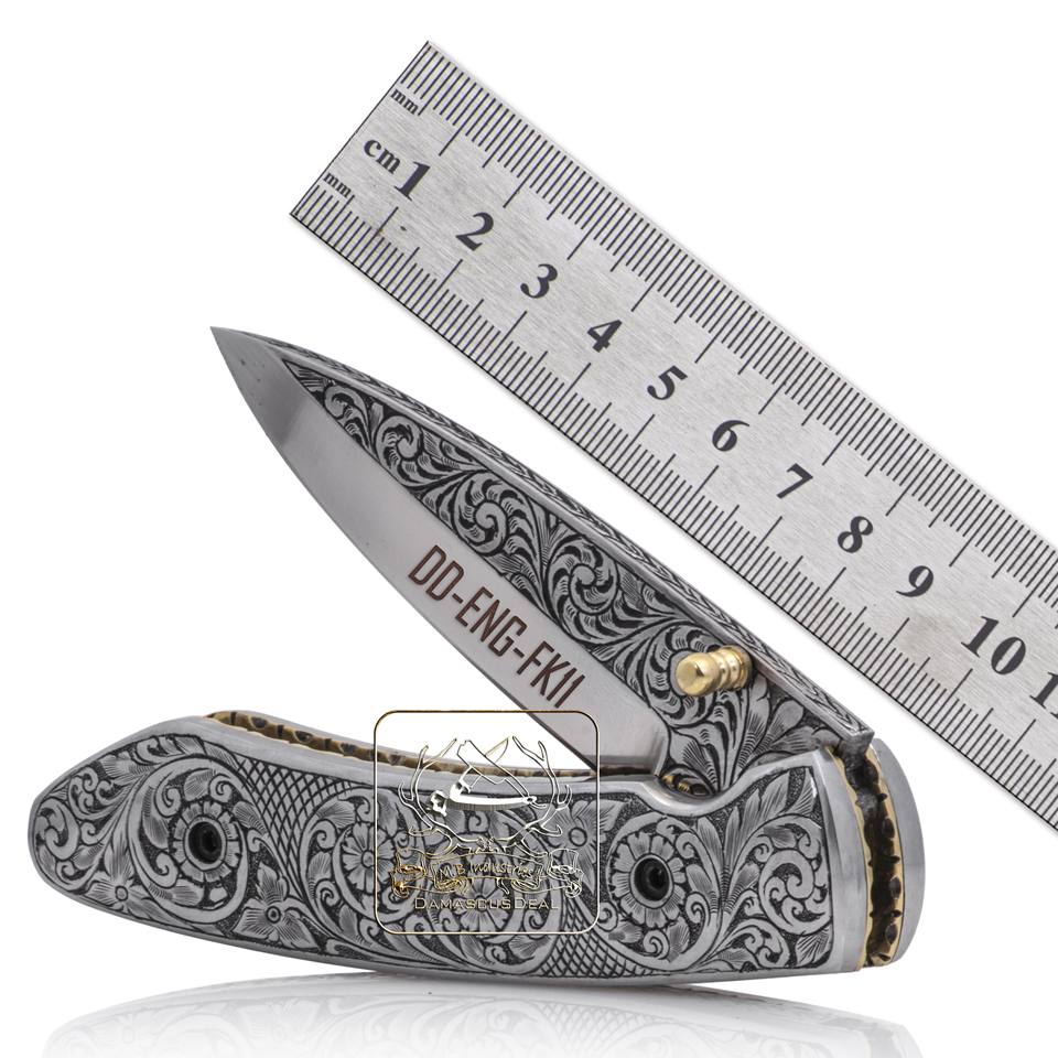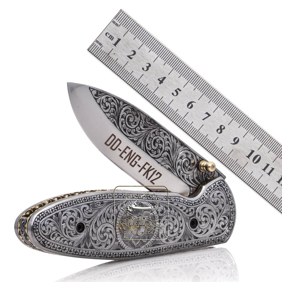 มีดพับพับได้ปรับแต่งได้มีดสแตนเลสลายดอกไม้ DD-ENG-FK11แกะสลักด้วยมือ