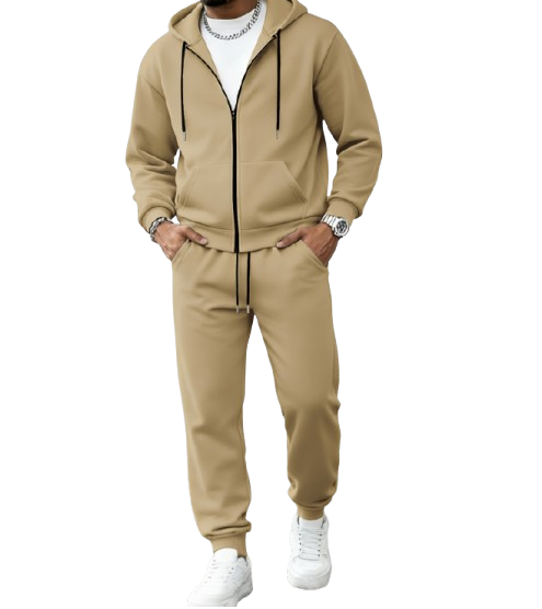 ชุดวอร์มผู้ชายผ้าฟลีซคอตตอน 100% พิมพ์ลายได้ตามต้องการ ชุดลำลองสองชิ้นสำหรับผู้ชาย