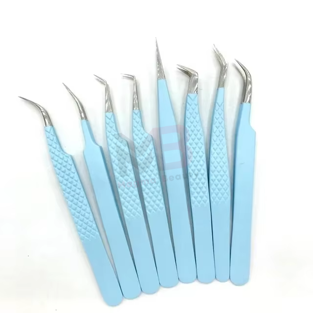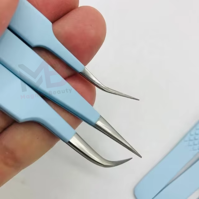 แหนบต่อขนตาสแตนเลสแบบปรับแต่งได้ แบรนด์ส่วนตัว สำหรับสุภาพสตรี แบบตรง 90 องศา