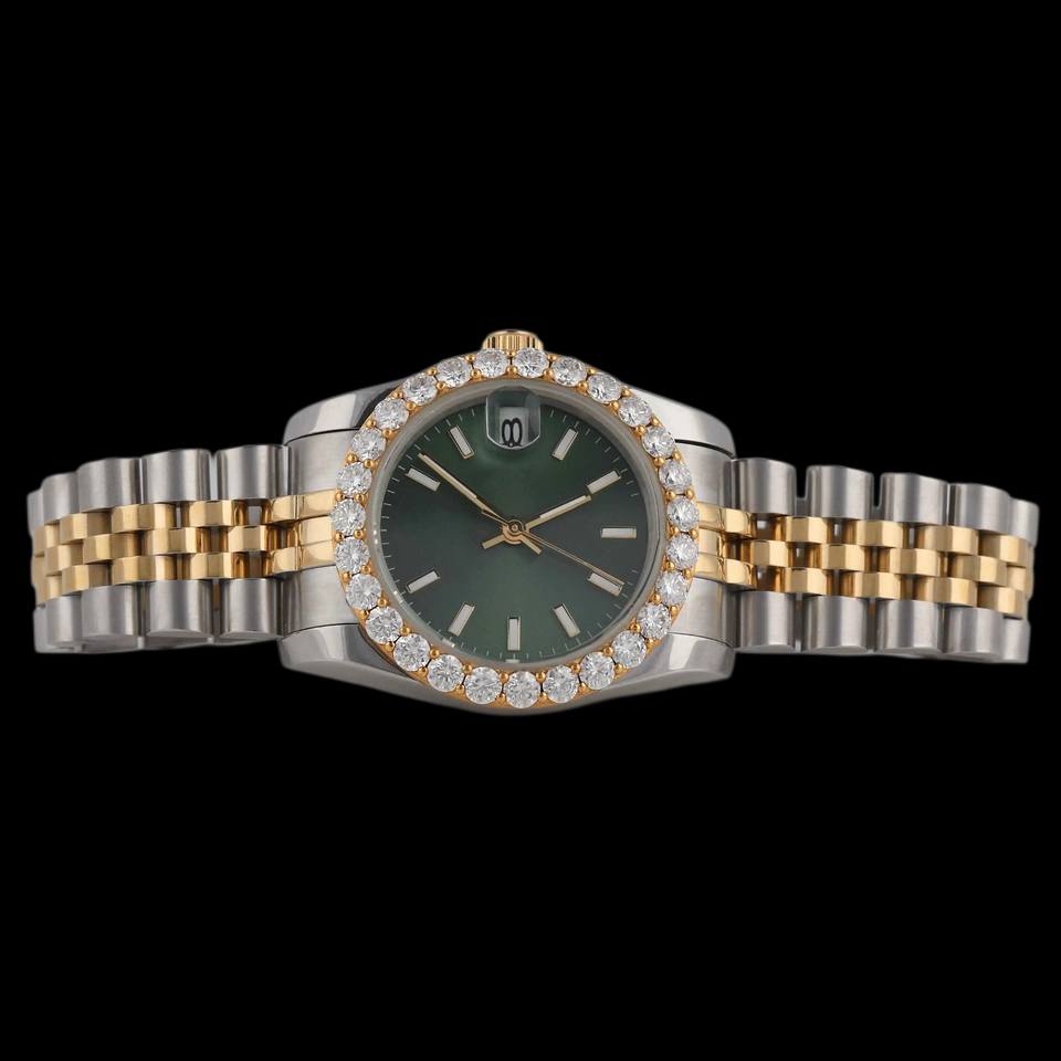 นาฬิกาคอลเลคชั่นพรีเมียมสำหรับผู้ชาย ดีไซน์แฟชั่นคุณภาพสูง หน้าปัดสีเขียวประดับเพชรโมอิสซาไนต์ควอตซ์ปรับแต่งได้ พร้อมฟังก์ชั่นวันที่อัตโนมัติ เหมาะสำหรับงานปาร์ตี้