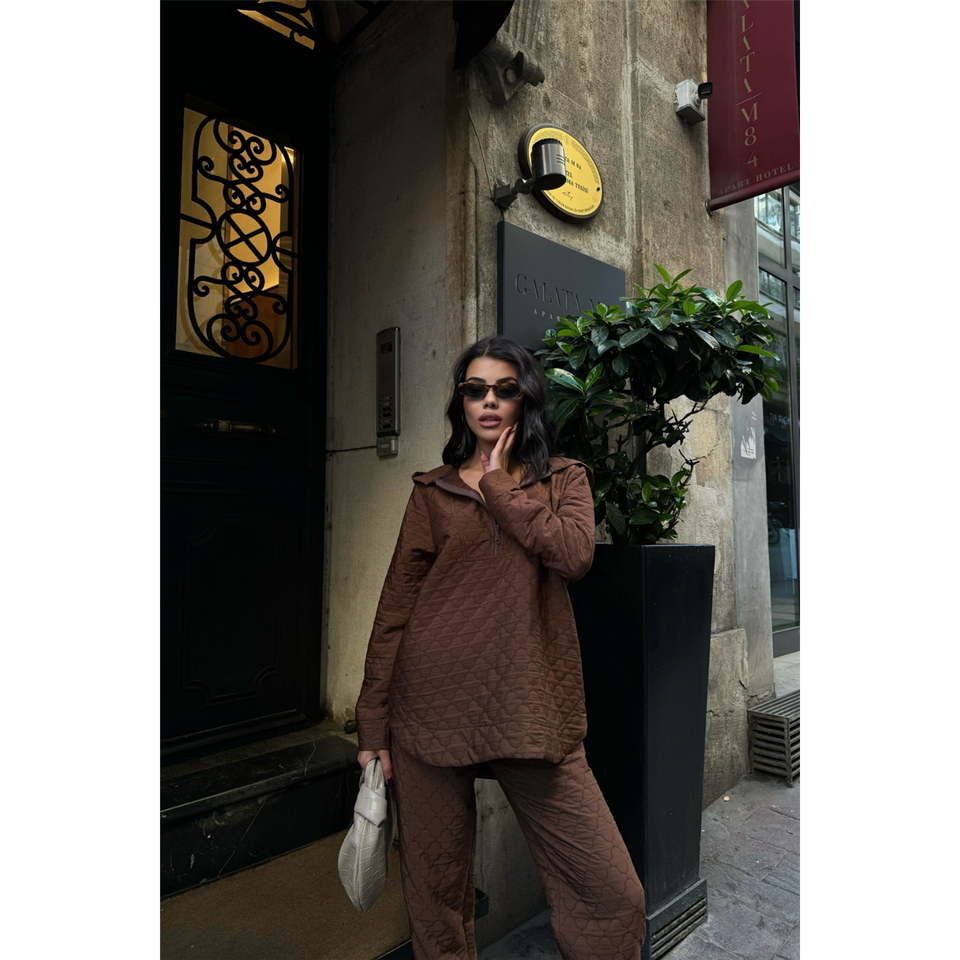ชุดวอร์มมีฮู้ดแบบควิลท์สำหรับเด็กผู้ชาย ปรับแต่งได้ ใส่สบาย ระบายอากาศ กันลม สไตล์สตรีทแวร์ สีน้ำตาล สำหรับฤดูหนาว ไซส์พลัส