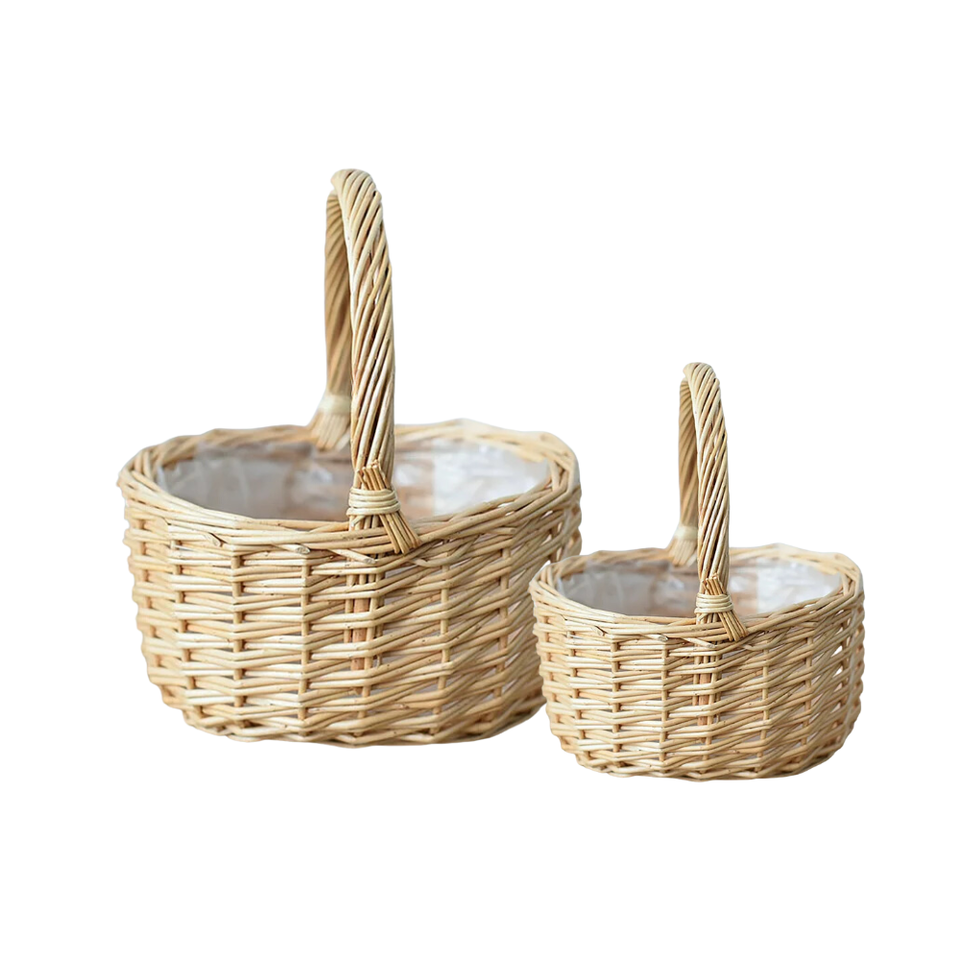 ตะกร้าหวายลายดอกไม้แบบปรับแต่งได้ตะกร้าสไตล์วินเทจจากเวียดนามมีตัวเลือกขนาดที่หลากหลายสำหรับงานแต่งงานและทุกโอกาส