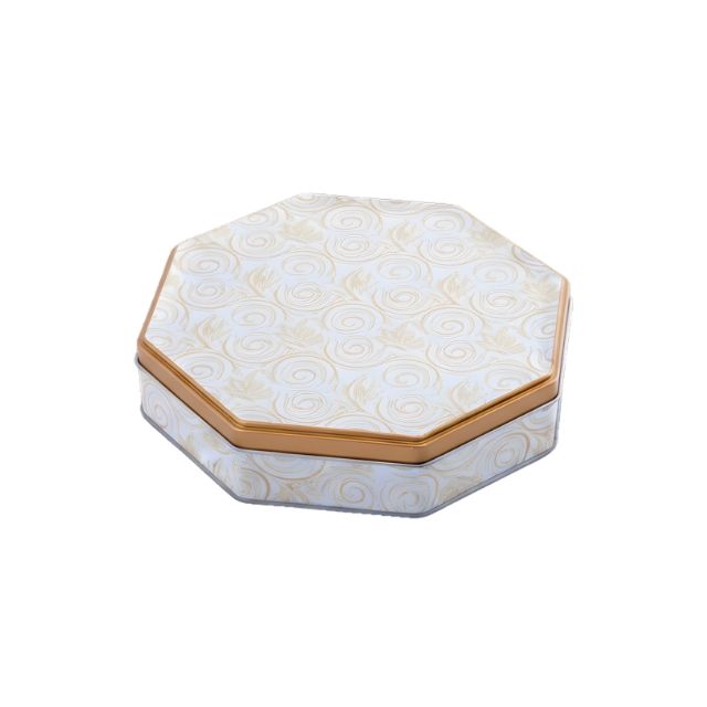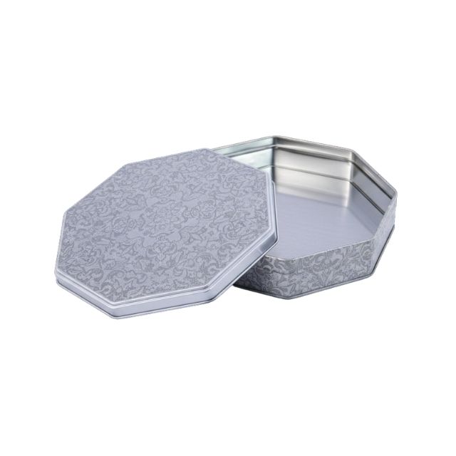 กล่องใส่ขนมแป้งรูปทรงแปดเหลี่ยม ทำจากแผ่นเหล็กเคลือบดีบุก สามารถปรับแต่งได้ รีไซเคิลได้ (เปล่า) บรรจุภัณฑ์อาหารเกรด กล่องของขวัญ ลายนูน