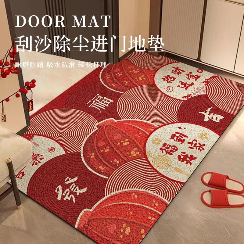 พรมเช็ดเท้าสีแดงแบบกำหนดเองได้ รูปทรงสี่เหลี่ยมผืนผ้า กันลื่น ทำจากเส้นใยโพลีเอสเตอร์ สำหรับทางเข้าบ้าน ลวดลายแปลกใหม่ ทำความสะอาดง่าย