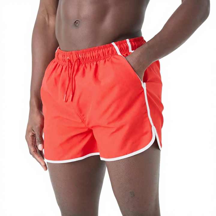 กางเกงว่ายน้ำชายเอวกลางผูกเชือก ปรับแต่งสีได้ตามต้องการ ผ้าแคนวาสคอตตอน 100% แห้งเร็ว