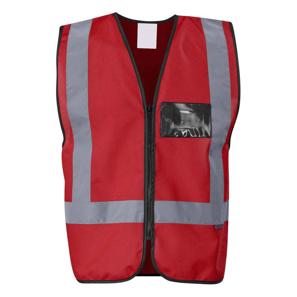 เสื้อกั๊กนิรภัยปรับแต่งได้สีแดงพร้อมโลโก้สะท้อนแสงเสื้อกั๊กวิศวกรตาข่ายรักษาความปลอดภัยส่วนบุคคล