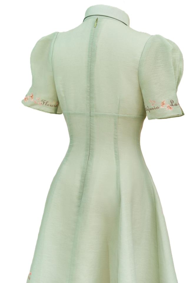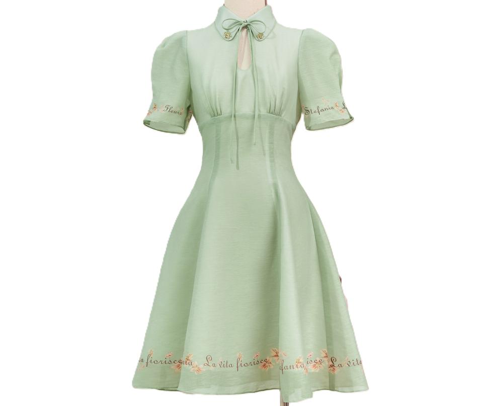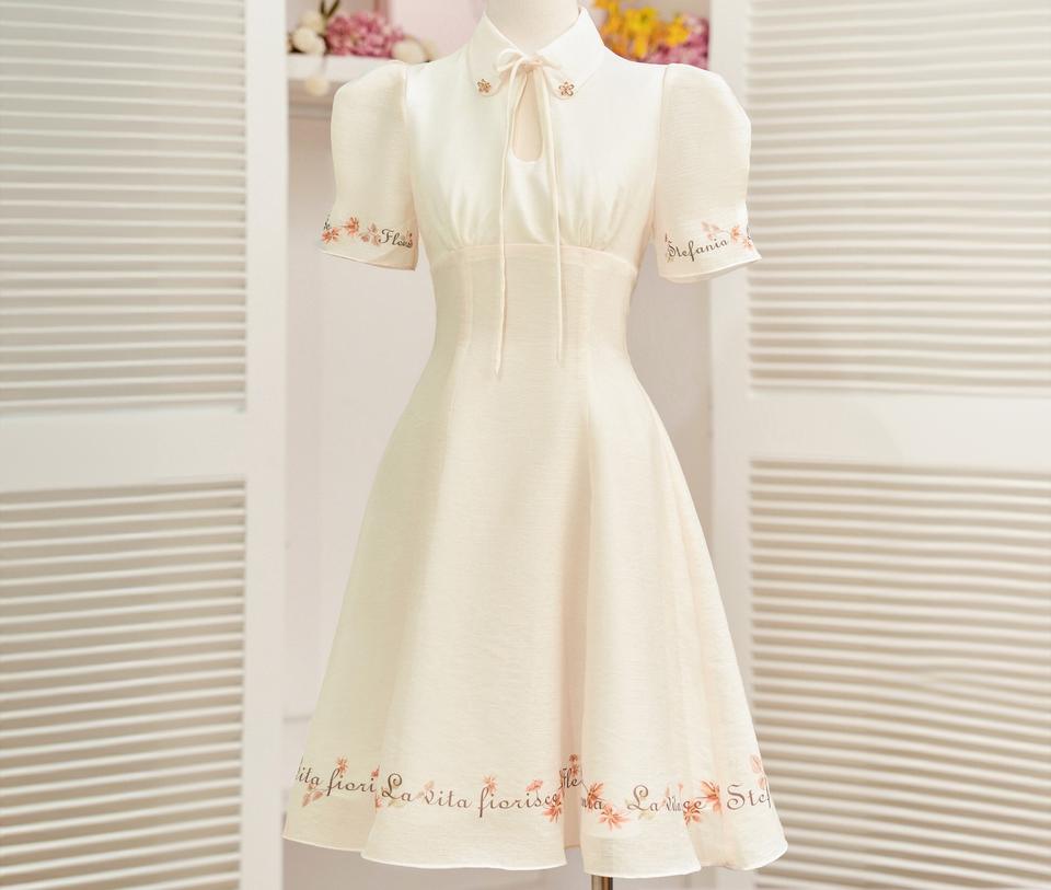 ชุดเดรสผ้าชีฟองพิมพ์ลายดอกไม้สไตล์อังกฤษ แขนปกติ ปรับแต่งได้ ความยาวระดับเข่า สำหรับฤดูร้อน ปกเสื้อปีเตอร์แพน ทรงเข้ารูปตามธรรมชาติ
