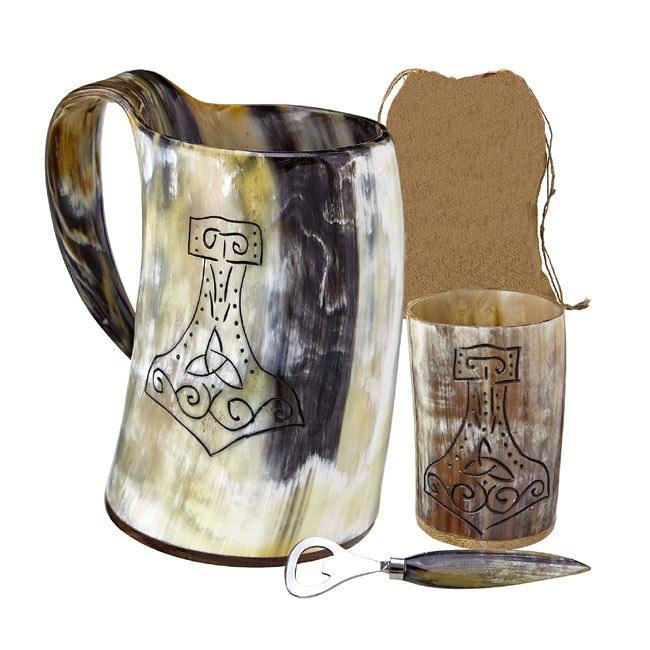 แก้วน้ำทรงแตรไวกิ้งแบบปรับแต่งได้ เป็นมิตรกับสิ่งแวดล้อม ทำจากเขาควายขัดเงา สำหรับดื่มเบียร์