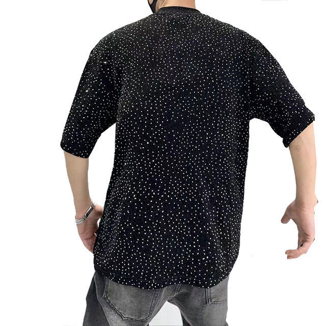 เสื้อยืดโอเวอร์ไซส์ลายกราฟิกประดับเพชรแบบปรับแต่งได้ แบรนด์โลโก้สตรีทแวร์ เสื้อยืดเปล่าทรงหลวมไหล่ตกสำหรับผู้ชาย