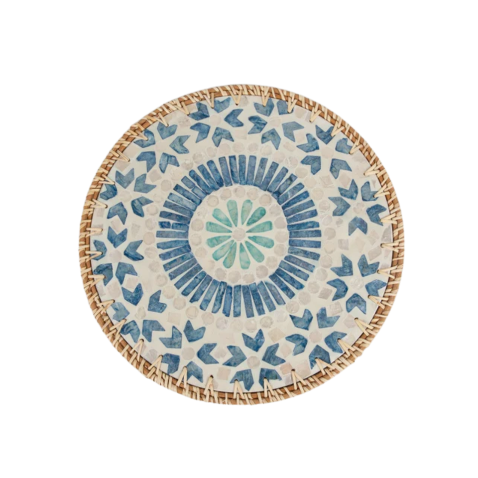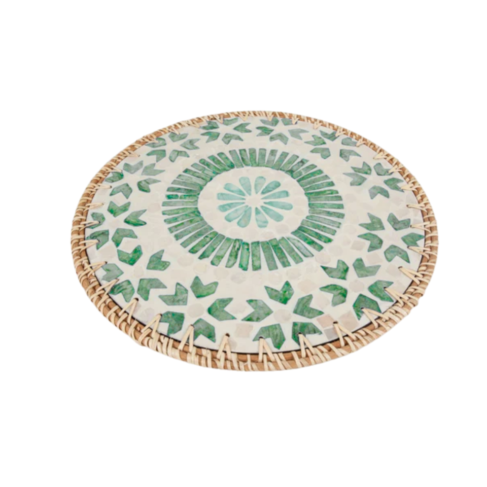 Rattan Edge Floral Mother Of Pearl Inlay Serving Placemats