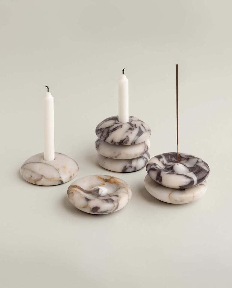 ที่วางเทียนหินอ่อนทรงกลมปรับแต่งได้สำหรับพื้นที่รับประทานอาหาร สร้างแสงนุ่มนวลและความกลมกลืนของตกแต่ง