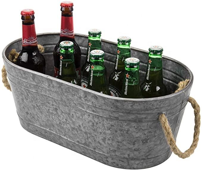 ถังน้ำแข็งโลหะชุบสังกะสีแบบปรับแต่งได้สำหรับงานปาร์ตี้ในร่ม/กลางแจ้ง-ที่เก็บไวน์และเบียร์สำหรับทุกโอกาส