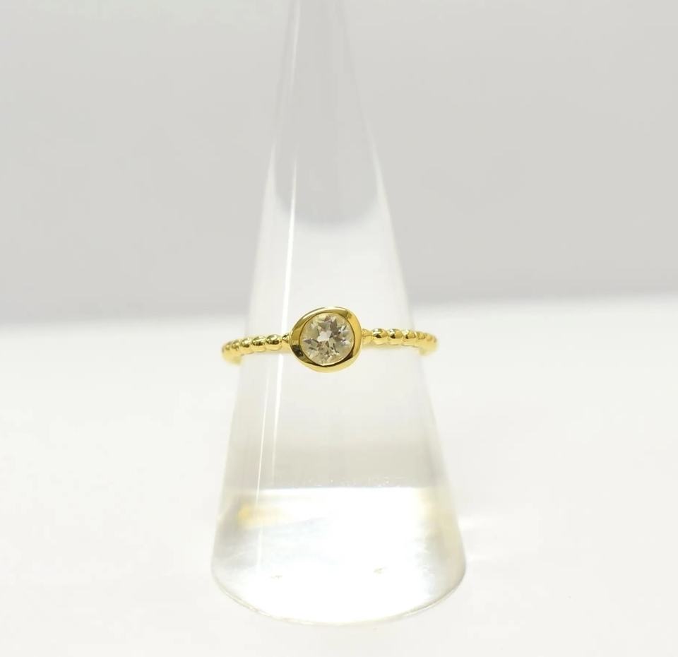 แหวนบุษราคัมสีขาวธรรมชาติขนาดเล็กชุบทอง14K ปรับแต่งได้ S925ผลิตในประเทศไทย