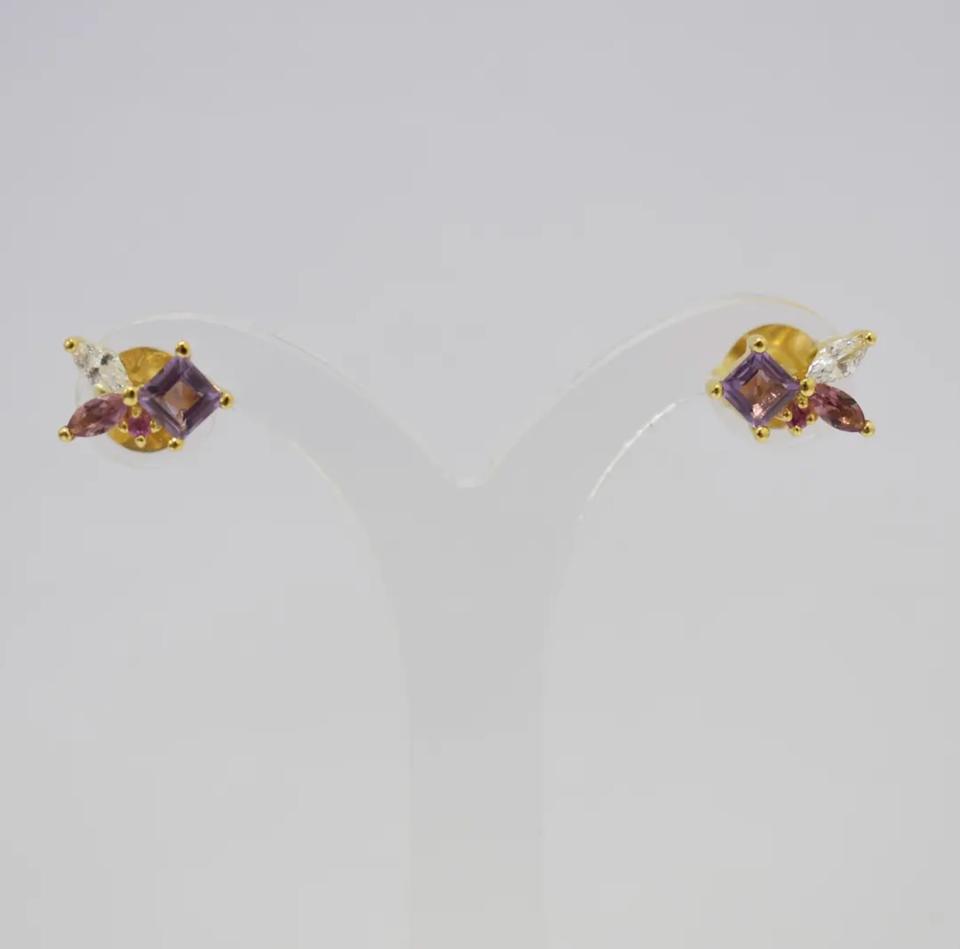 Customizable S925 14K Gold Plated Minimalist Classic Drop Earrings Natural Pink Tourmaline Sapphire Amethyst Cubic Fashion