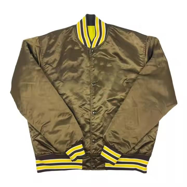 แจ็คเก็ตเบสบอลแบบวาร์ซิตี้ผ้าซาตินปรับแต่งได้ พร้อมป้ายปักลาย แจ็คเก็ตแขนยาวสำหรับผู้ชายสำหรับฤดูหนาว