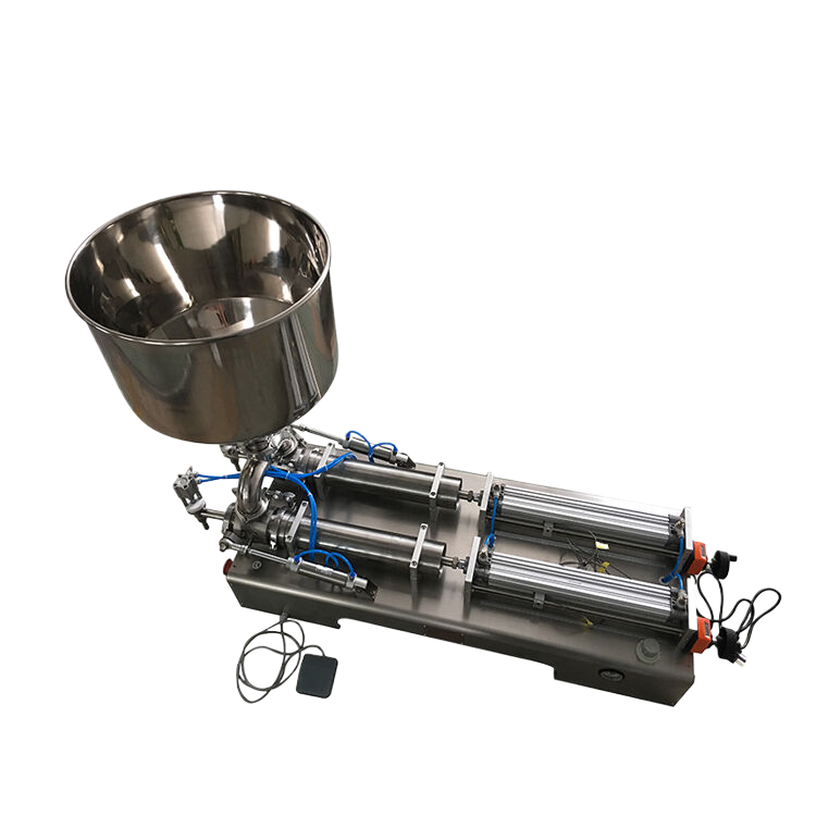 เครื่องบรรจุของเหลวแบบกึ่งอัตโนมัติ 2 หัว ปรับแต่งได้ ผลิตจากสแตนเลส ขนาด 1000-5000 มล. สำหรับบรรจุขวดพลาสติกและแก้ว รับประกัน 1 ปี สำหรับซอสมะเขือเทศ