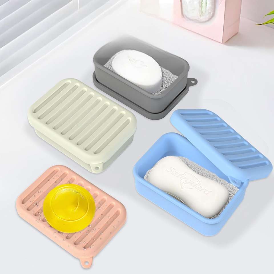ที่วางสบู่ซิลิโคนแบบปรับแต่งได้ พร้อมฝาปิดกันน้ำหยด ดีไซน์สร้างสรรค์ สวยงาม เรียบง่าย