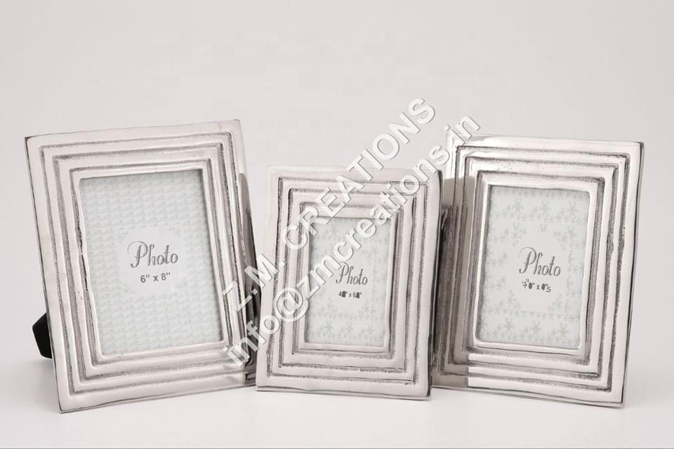 กรอบรูปโลหะอลูมิเนียมสีเงินปรับแต่งได้ทรงสี่เหลี่ยมผืนผ้าสี่เหลี่ยมสำหรับตกแต่งโต๊ะภาพส่วนตัวครอบครัวและเด็ก