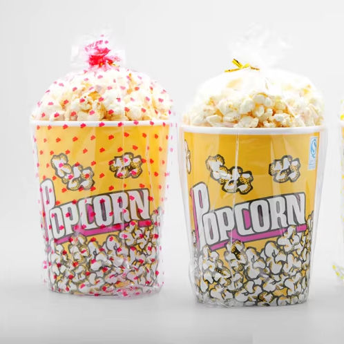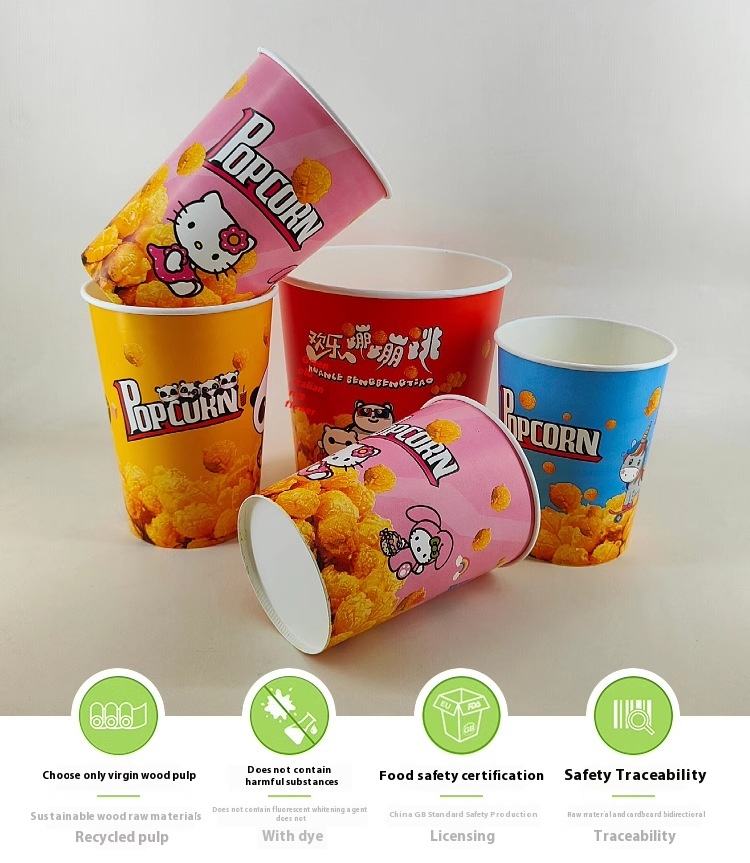 ถังใส่ป๊อปคอร์นกระดาษแบบใช้แล้วทิ้งขนาดใหญ่สำหรับครอบครัวบรรจุภัณฑ์ทรงกระบอกขนาดเล็กแบบกระดาษฟอยล์สีทองปรับแต่งได้