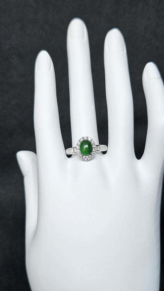 หยกเจไดต์ธรรมชาติ เกรด A, เงิน 925, เพชรสังเคราะห์