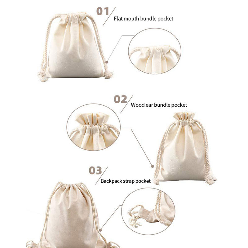 ถุงของขวัญผ้าฝ้ายรีไซเคิลพร้อมกระเป๋าหูรูดผ้าลินินคอตตอนขนาดและโลโก้ที่ปรับแต่งได้