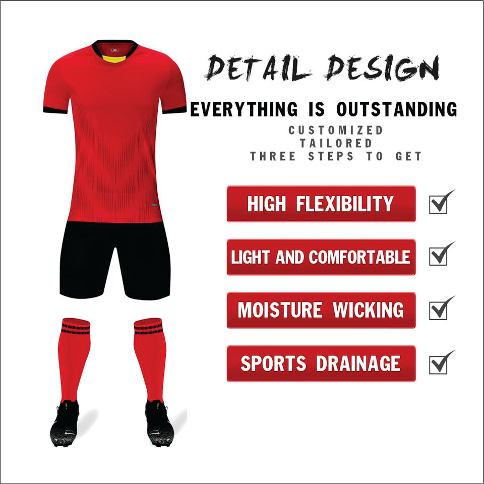 เสื้อฟุตบอลแบบกำหนดเองได้ เสื้อฟุตบอลสั่งทำพิเศษ ทนทาน ผลิตจากโพลีเอสเตอร์ 100% แห้งเร็ว พิมพ์ลายแบบซับลิเมชั่น บริการ OEM ชุดฝึกซ้อม