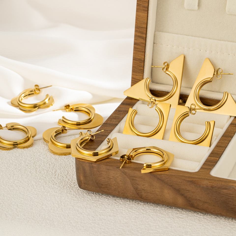 ต่างหูรูปหัวใจสามเหลี่ยมดอกไม้แบบกลวงสแตนเลสสตีลปรับแต่งได้ ชุบทอง 18K ของขวัญเครื่องประดับแฟชั่น ต่างหูแบบห่วง