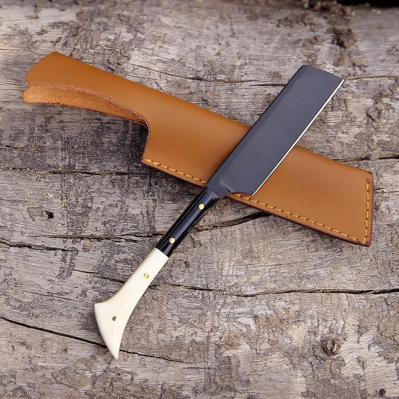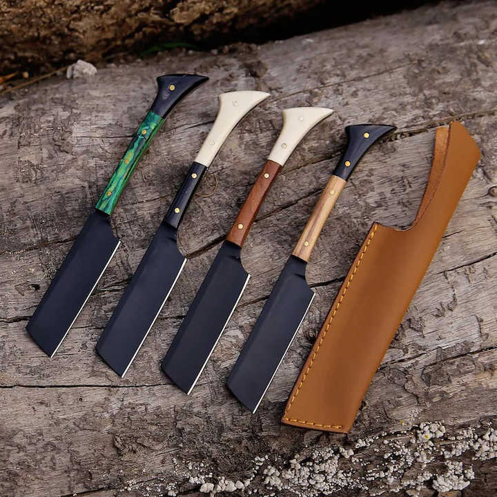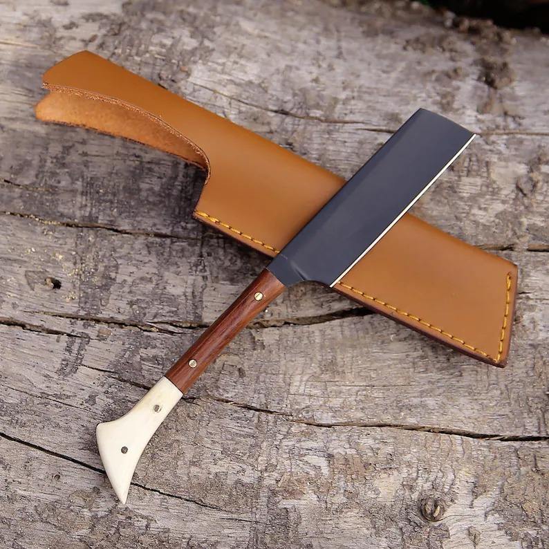 มีดโกนตรงปลายแหลมแบบปรับแต่งได้ ทำจากสแตนเลส ด้ามไม้แบบเต็มด้าม ผลิตด้วยมือ รองรับ OEM ความหนาใบมีด 0.45 มม. ขนาด 6.5