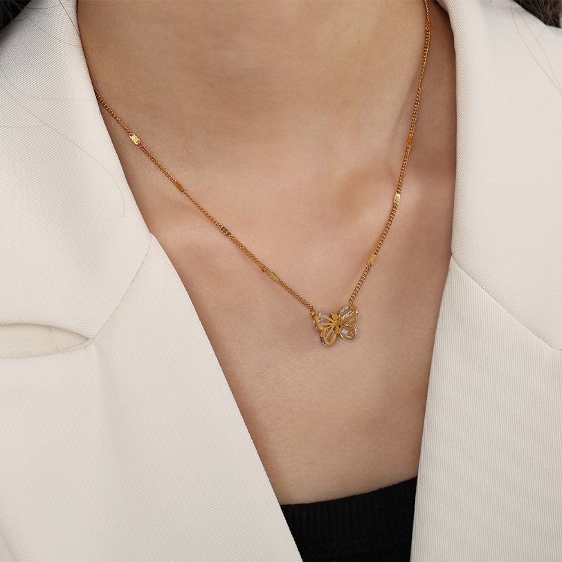 สร้อยคอผีเสื้อประดับเพชรซิคอนสแตนเลสสตีลปรับแต่งได้ ชุบทอง 18K สร้อยคอจี้แฟชั่นสวยหรูสำหรับผู้หญิง